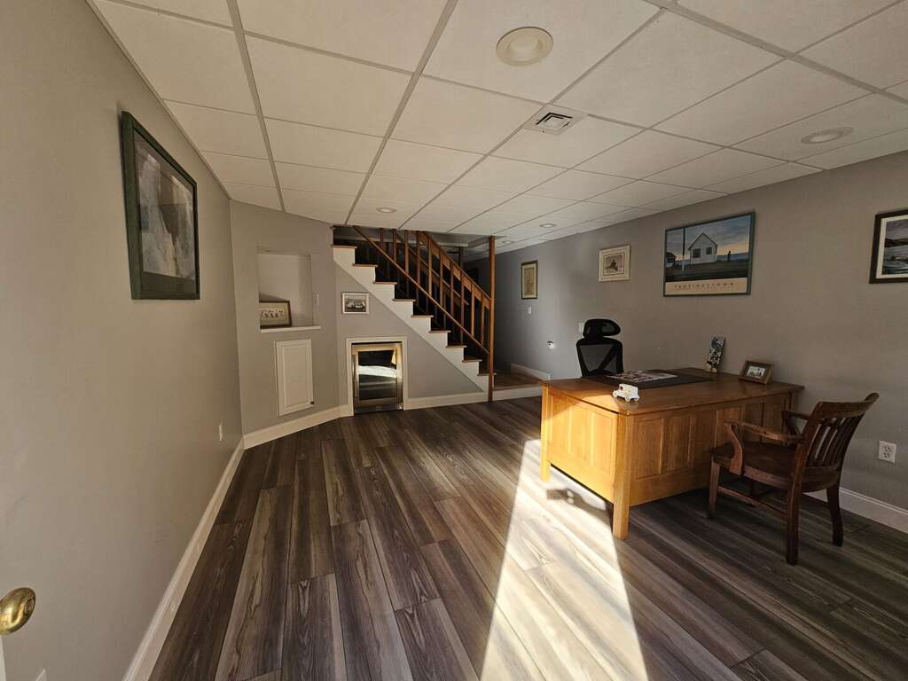 The finished, walk-out lower level adds functional extra space, including a desk workstation area, a TV and game table area, and a ping pong table.<br />