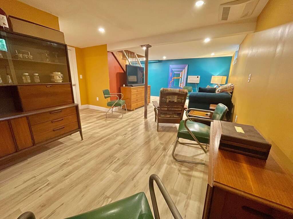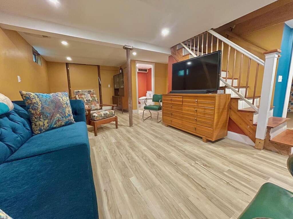The home comfortably accommodates up to eight guests with versatile sleeping arrangements. The main floor features two serene bedrooms, each with a queen bed and a full bathroom nearby. The second floor offers a spacious bedroom equipped with a queen bed, a twin bed, and a twin trundle. For additional space, the lower level includes a cozy living area with an entertainment space and a pull-out queen sofa bed, along with a convenient half bath.<br />