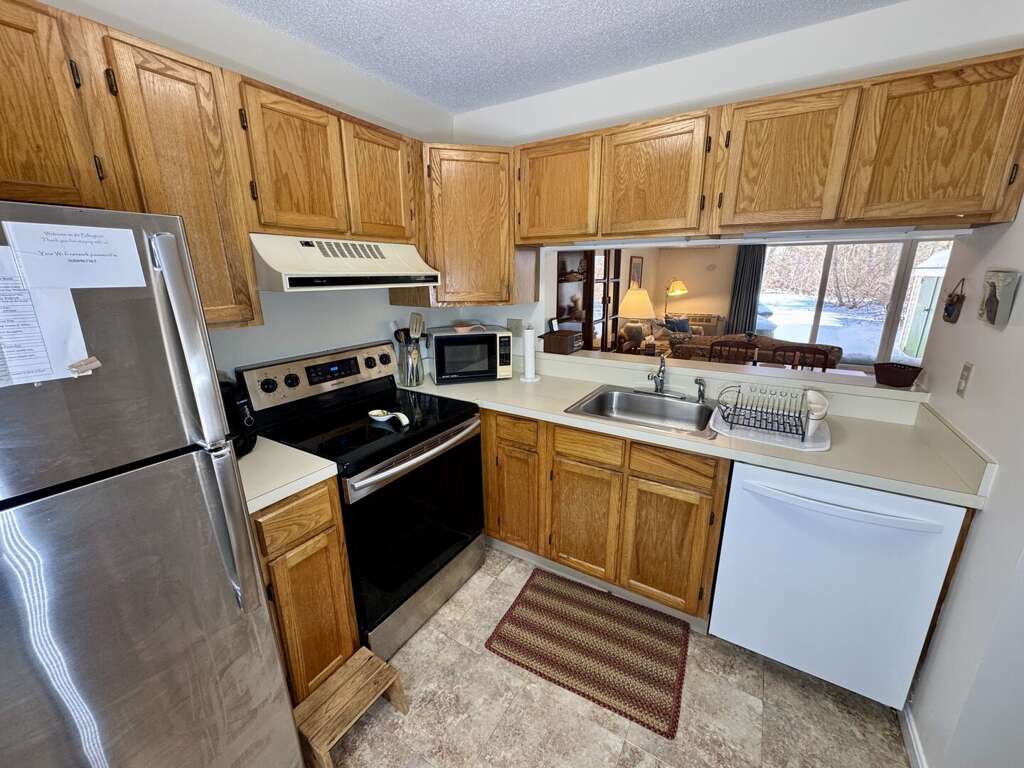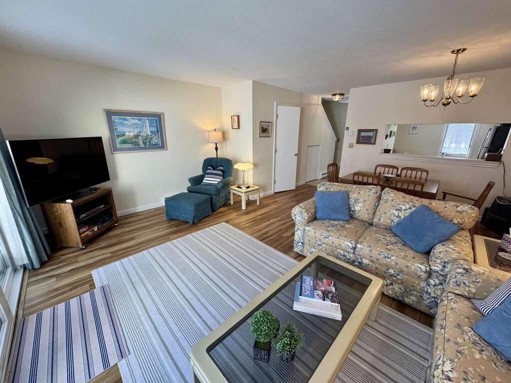 This multi-level middle unit offers a comfortable and efficient layout, perfect for those seeking a peaceful retreat. The main floor features a bright, open living and dining area designed for relaxation, along with a convenient half-bath. Upstairs, you will find two private bedrooms and a full bathroom, providing a nice separation of space between the sleeping quarters and the main living area.<br />