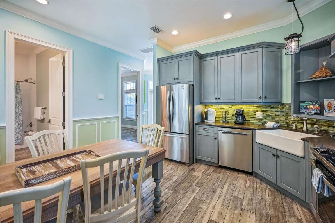Step inside Aqua Oasis in Holmes Beach, Florida, and experience the seamless blend of elegance and comfort as you enter the beautifully designed kitchen and living spaces. The kitchen is a focal point of this luxurious vacation rental, boasting a modern and sophisticated design. Equipped with top-of-the-line appliances and ample counter space, it is a chef's dream come true. The open concept layout allows for easy flow between the kitchen, dining area, and living room, creating a welcoming and inclusive atmosphere for entertaining. The living spaces are thoughtfully furnished with plush seating, cozy rugs, and stylish decor, creating a space that is both inviting and aesthetically pleasing. Whether you're preparing a gourmet meal, hosting a dinner party, or simply relaxing with your loved ones, the kitchen and living spaces at Aqua Oasis provide the perfect backdrop for unforgettable moments.