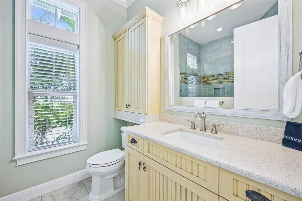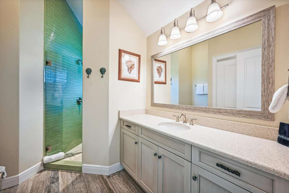 As guests continue their exploration of the luxurious Aqua Oasis in Holmes Beach, Florida, they will find themselves captivated by the exquisite details of the bedrooms and bathrooms. The bedroom decor is tastefully designed, with each room offering a serene and relaxing atmosphere. The master suites are particularly impressive, featuring a king-size bed and a private porch where guests can enjoy their morning coffee or unwind with a glass of wine in the evening. The additional bedrooms are equally inviting, with a bunk bed option for the younger guests. Moving on to the bathrooms, guests will be delighted to find modern fixtures and luxurious amenities. From the rain showerheads to the plush towels, every detail has been carefully chosen to ensure a truly indulgent experience. Whether it's getting ready for a day at the beach or unwinding after a long day of exploring, the bathrooms at Aqua Oasis provide the perfect oasis of relaxation.