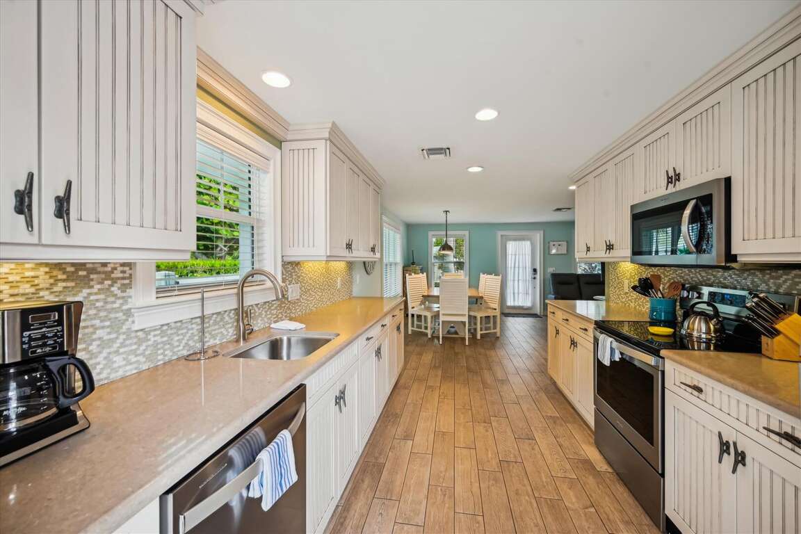 Guests at Castaway Cottage in Holmes Beach, FL not only have access to a fantastic BBQ grill and beach accessories, but they also enjoy the convenience and comfort of a fully equipped kitchen and an open layout for easy entertaining. The kitchen is stocked with all the necessary appliances, including a refrigerator, stove, microwave, and dishwasher, making it easy for guests to prepare meals during their stay. The open layout of the cottage allows for seamless flow between the kitchen, dining area, and living room, making it ideal for hosting gatherings and entertaining guests. Whether you're whipping up a delicious feast or simply enjoying a casual meal with loved ones, the fully equipped kitchen and open layout of Castaway Cottage provide the perfect setting for a memorable vacation.