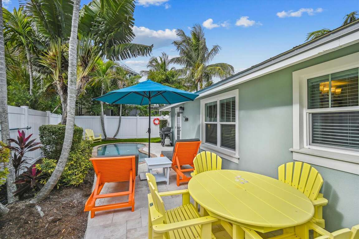 Nestled within the lush surroundings of Castaway Cottage in Holmes Beach, FL, is a private patio adorned with tropical landscaping, offering a serene and inviting outdoor oasis for relaxation and enjoyment. The outdoor patio design at Castaway Cottage is carefully crafted to enhance the overall vacation experience, providing guests with a range of benefits of outdoor living. Here are three notable features of the private patio:
