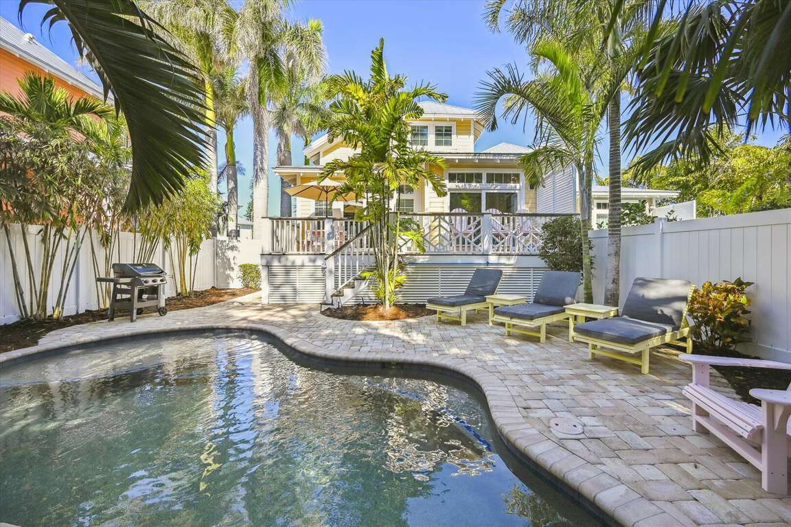 With 4 bedrooms and 4 full bathrooms, the Coconut Hideaway vacation rental in Holmes Beach, FL offers ample space and comfort for up to 8 guests. The property boasts 1750 sqft of living space, ensuring that everyone can spread out and relax. The fully equipped kitchen comes complete with a dining table for 8, perfect for enjoying meals together. Beyond the walls of this luxurious rental, guests will find a private patio with a pool, outdoor shower, and Weber grill, creating the ideal space for outdoor entertaining. For those who enjoy dining out, the Coconut Hideaway is conveniently located near a variety of restaurants and dining options. Additionally, beach access is just a short distance away, providing guests with easy access to water activities and the beautiful sandy shores of Holmes Beach.