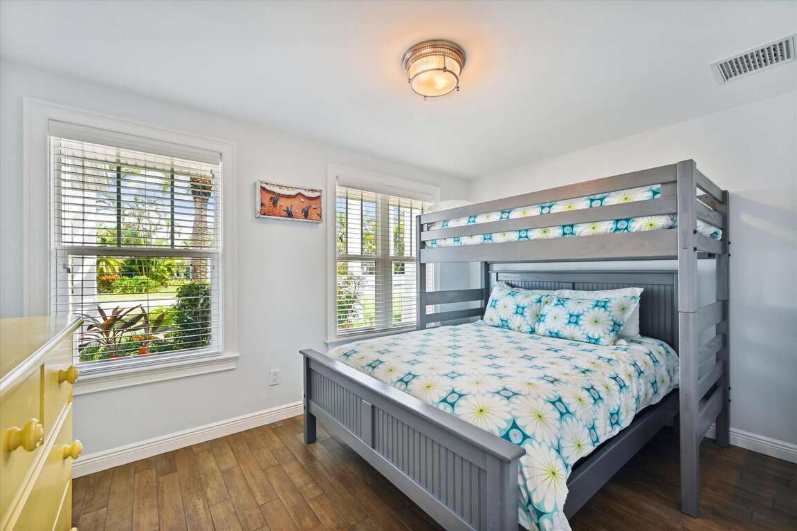 Nestled at 7508 Gulf Drive, the Loggerhead Beach House offers a prime location for a relaxing vacation on the beautiful island of Holmes Beach. This charming vacation rental is situated in a residential area, providing a peaceful atmosphere for guests to unwind. The house features two bedrooms, accommodating up to five people, making it perfect for a small family or a group of friends. With 950 square feet of living space, there is plenty of room to spread out and relax. In terms of nearby attractions, guests will find themselves just a short distance from the pristine beaches of Holmes Beach, where they can soak up the sun or take a refreshing swim in the crystal-clear waters. Additionally, there are numerous shops, restaurants, and recreational activities in the area, ensuring that guests will never run out of things to do.