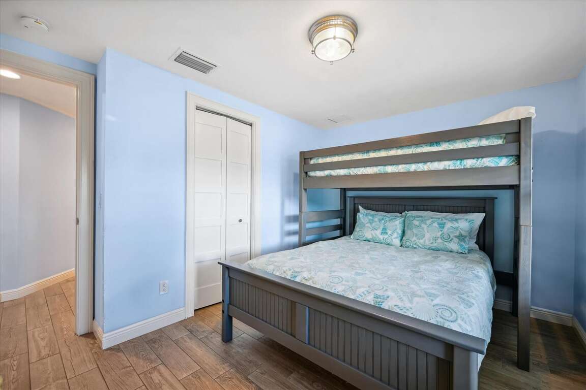 Nestled at 7614 Gulf Drive, the Surf Camp Cottage with Private Pool offers a prime location and generous living space for a memorable vacation getaway. Situated in a residential area, guests can enjoy the tranquility of their surroundings while being just a short distance from the beach and other local attractions. This cozy cottage boasts 2 bedrooms and can comfortably sleep up to 5 guests. With 950 square feet of living space, there is plenty of room to relax and unwind. The cottage features a fully equipped kitchen with bar seating for 4, a private patio with a heated pool, outdoor shower, and Weber grill. Whether you're looking for a romantic retreat or a fun-filled family vacation, the Surf Camp Cottage provides the ideal location and size for your needs.