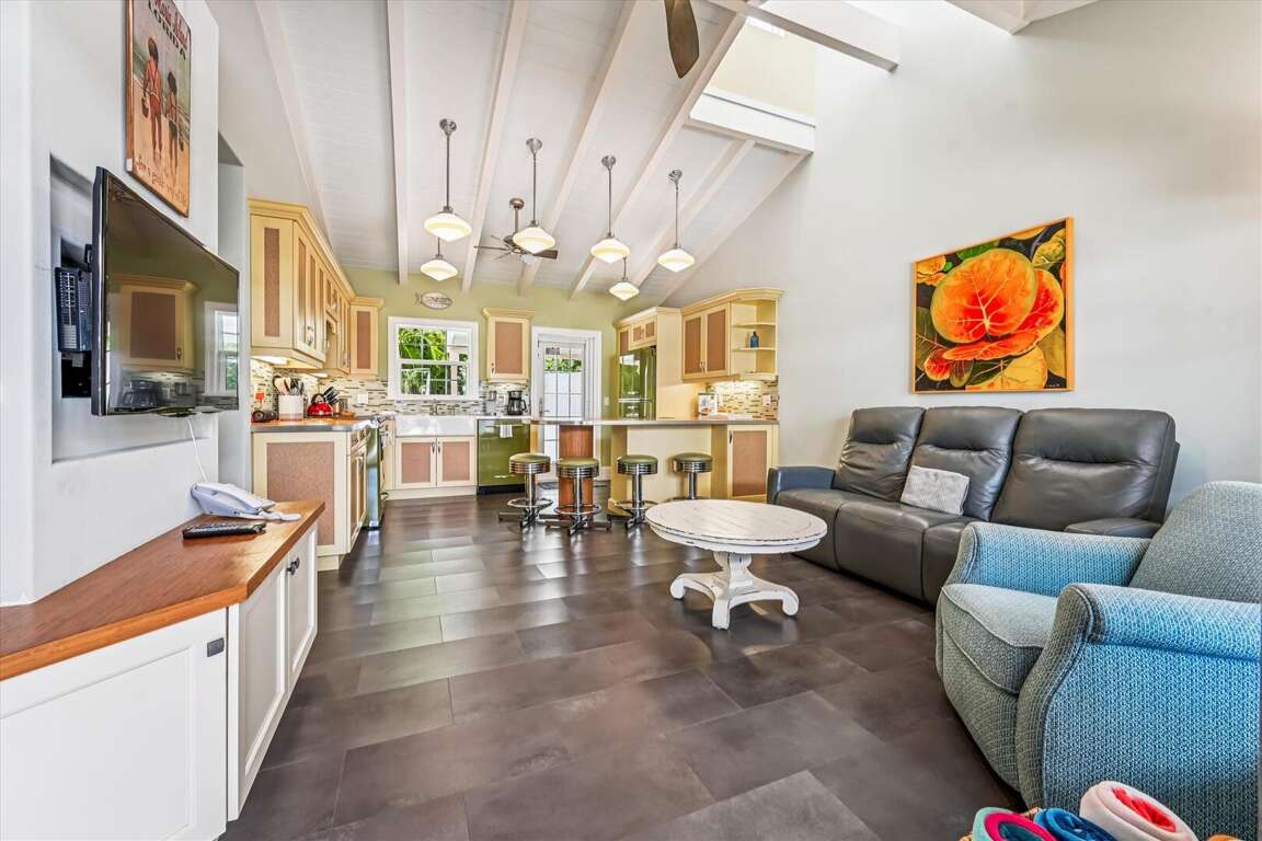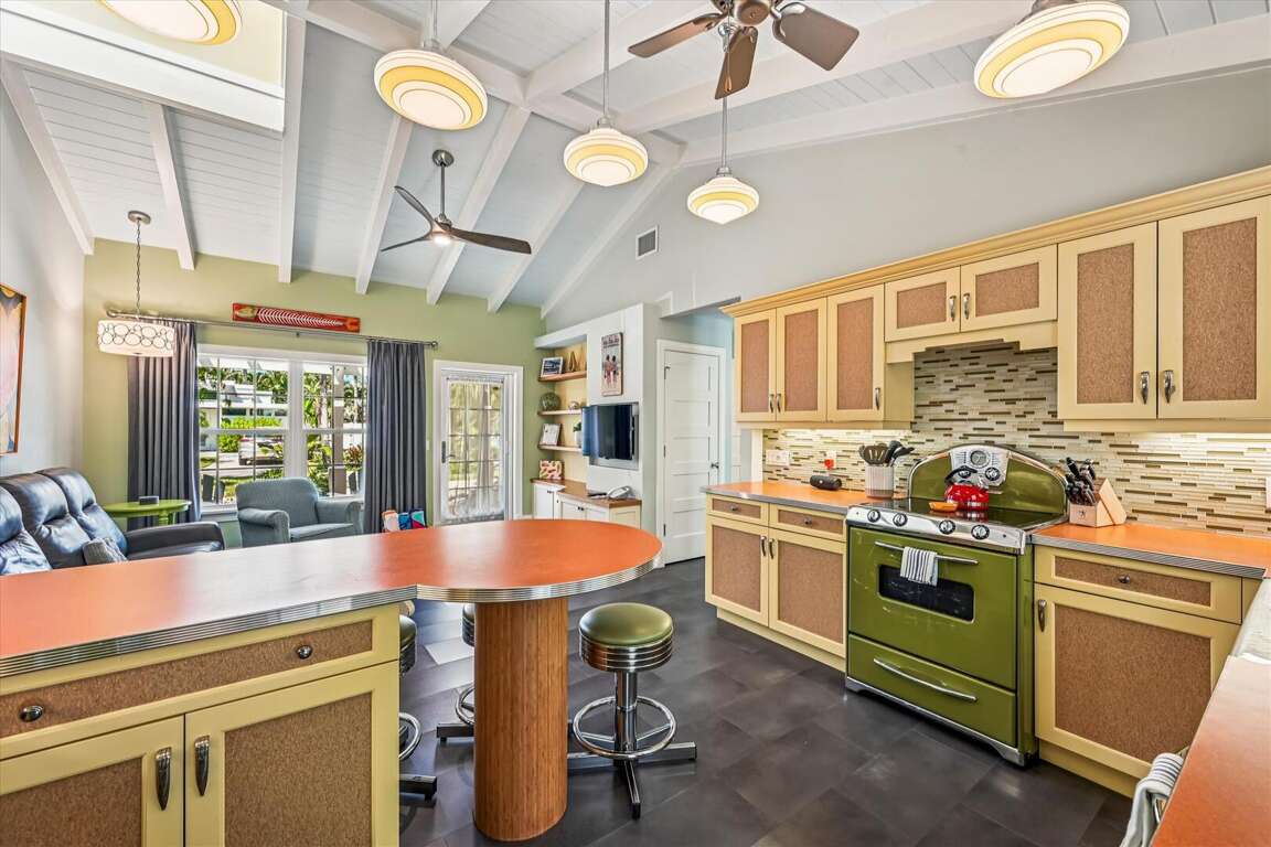 The Flip Cottage offers an array of well-appointed features that cater to both comfort and convenience during your stay in Holmes Beach, FL. Step into the spacious living area, where you can relax and unwind after a day of exploring the island. The fully equipped retro-style kitchen is a charming addition, complete with bar seating for four. Whip up a delicious meal or enjoy a cup of coffee while taking in the vintage vibes. The master suite is a true sanctuary, featuring a luxurious King size bed and 600 thread count prima cotton wrinkle-free sheets for a restful night's sleep. Linens, towels, and beach towels are all provided, ensuring you have everything you need for a comfortable stay.