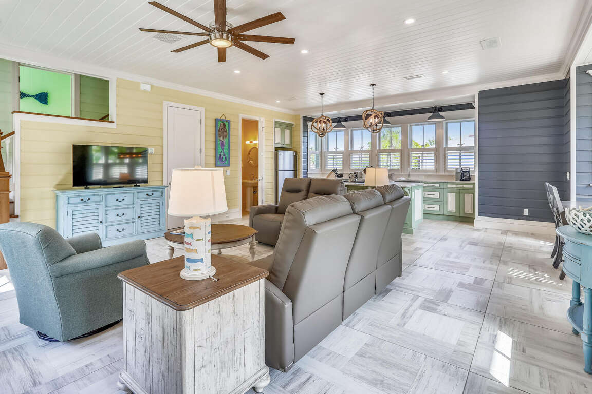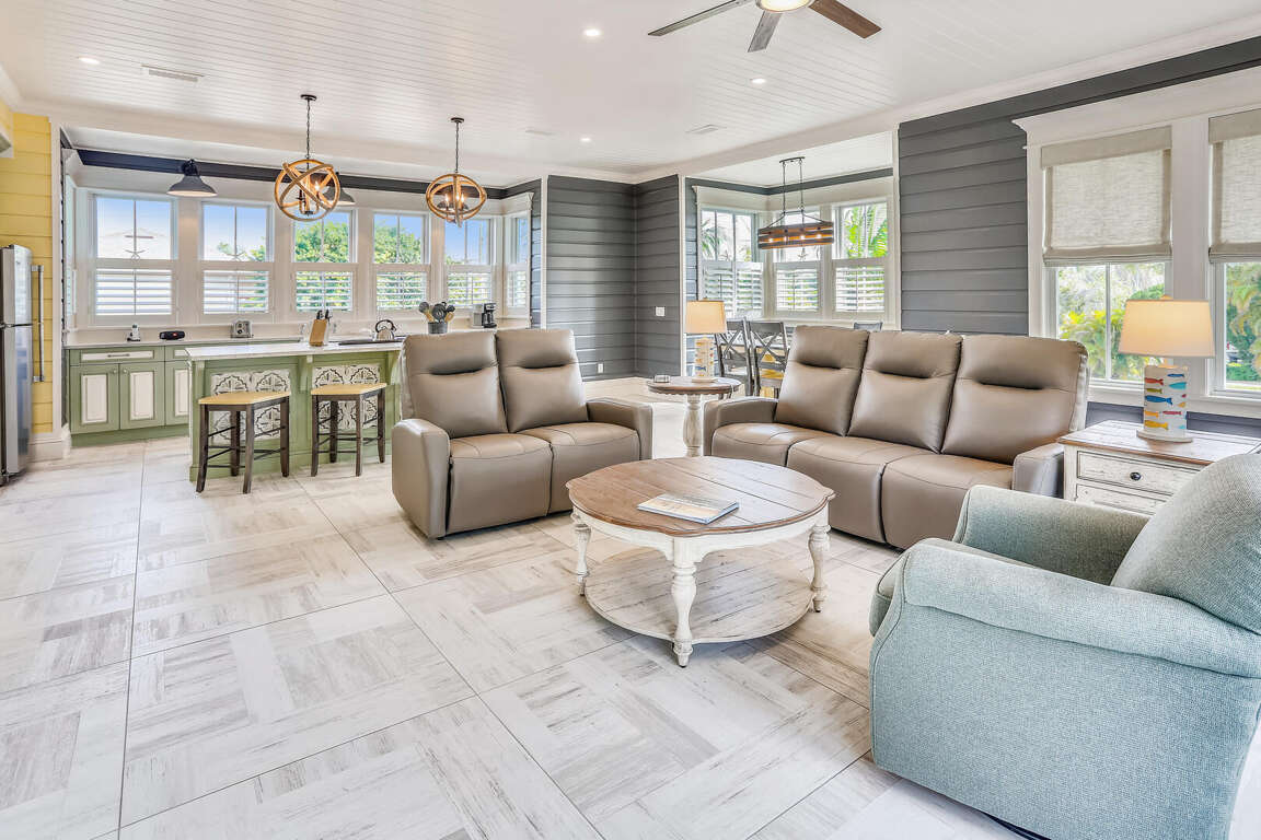 Moving on to the spacious living space at Salt Cottage in Holmes Beach, FL, guests will find a well-designed layout that offers comfort and relaxation for their vacation. The interior design of the living area is tastefully done, creating an inviting atmosphere for guests to unwind. Here are some highlights of the living space: