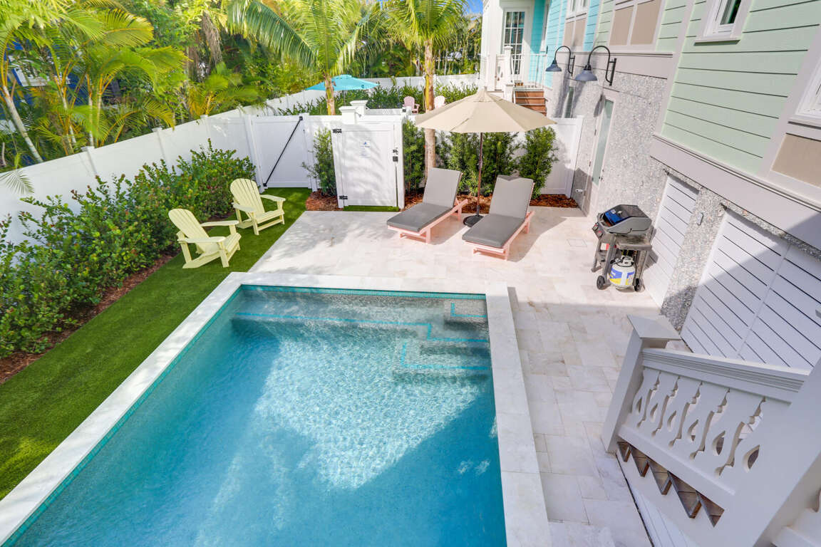 Escape to Salt Cottage, a delightful vacation rental in Holmes Beach, FL. This inviting 2 bedroom house offers a private pool and a range of amenities for your utmost comfort.