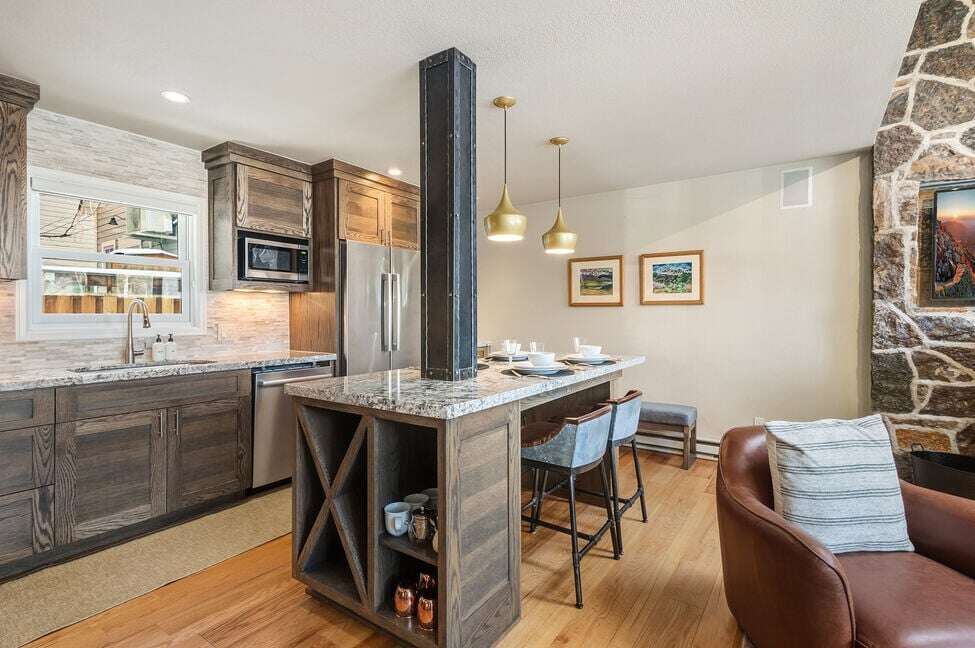 Skylights throughout the condo create a warm, airy feel — the perfect blend of mountain comfort and modern design.<br />