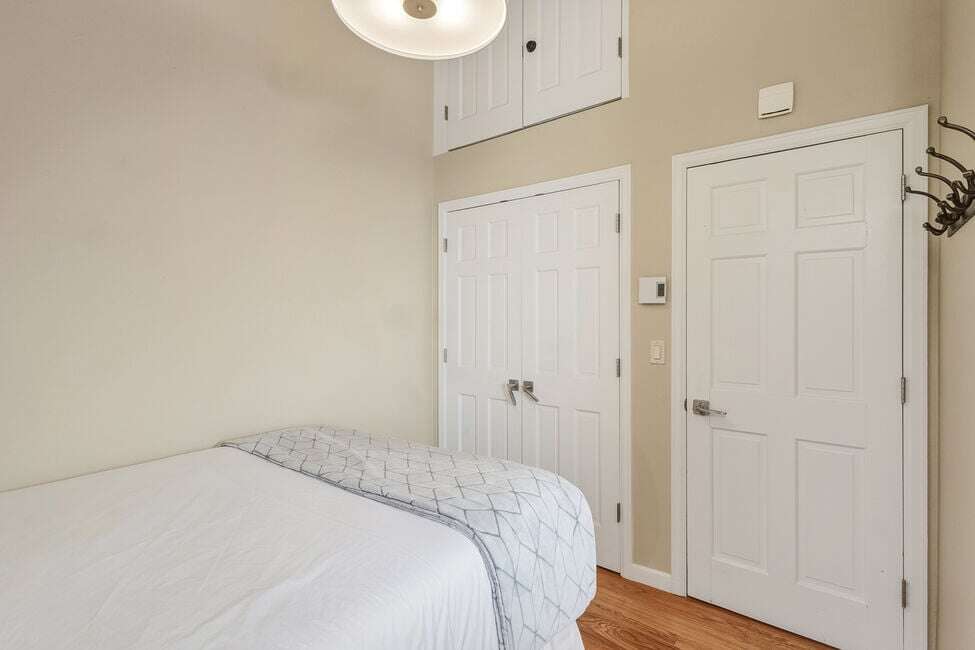 • Primary Bedroom: King bed, ensuite bathroom with step-in tiled shower and single vanity, ceiling fan, spacious closet, and abundant natural light<br />