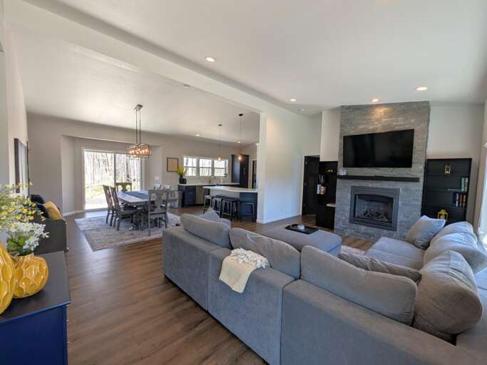 Surrounded by nature and set on a quiet, private lot, this inviting retreat offers the ideal blend of comfort and seclusion for families and couples seeking to relax and recharge. Inside, you’ll find a bright, open-concept living area with cozy furnishings and plenty of room to gather. The fully equipped kitchen makes mealtime a breeze, while the dining area is perfect for sharing stories and meals after a day of adventure. The home comfortably sleeps up to 8 guests, with four well-sized bedrooms and two full bathrooms designed for convenience and ease. Whether you’re lounging on the large patio, roasting marshmallows by the fire pit, or simply enjoying the quiet surroundings, this property is made for unwinding. Close to local hiking trails, lakes, or nearby attractions, yet far enough from the crowds to feel like your own private hideaway, this vacation rental is a perfect home base for your next Door County vacation!