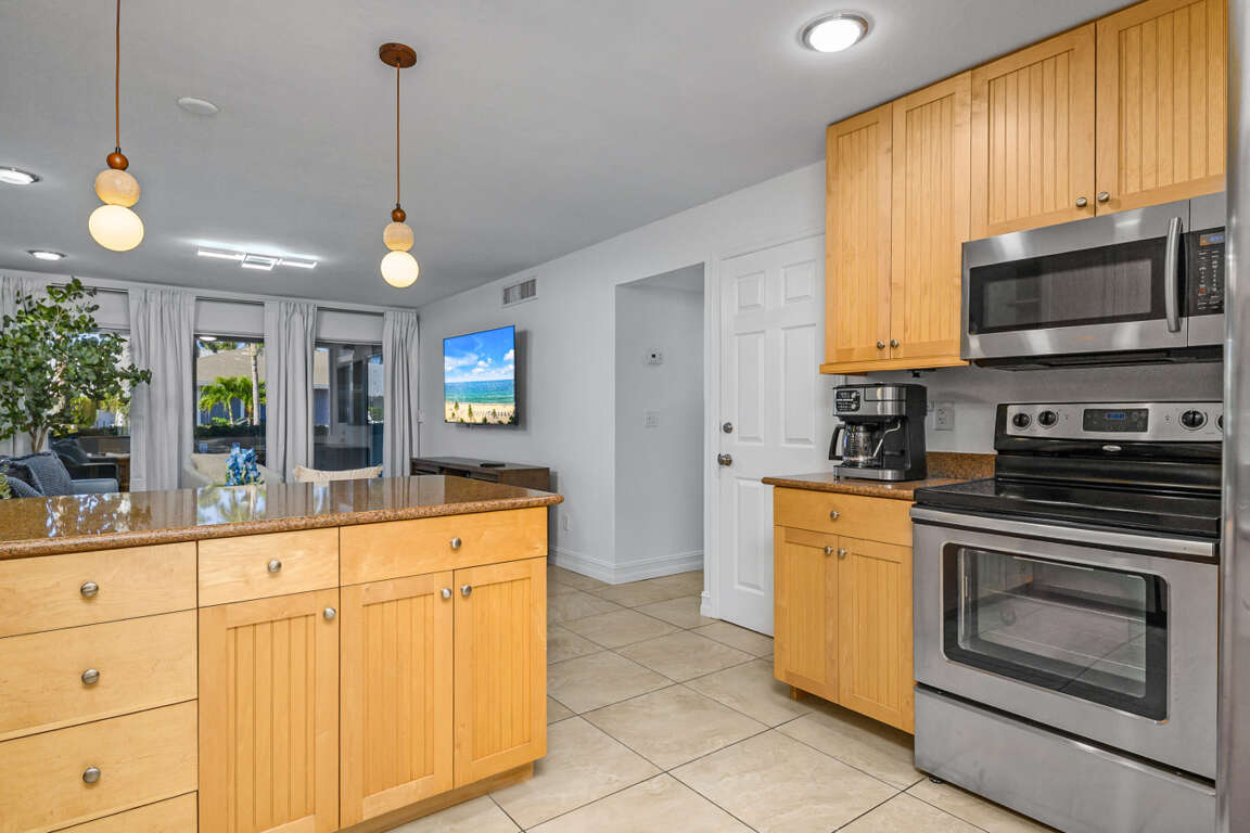 Designed for comfort and convenience, the apartment features a bright living room with modern décor, a fully equipped kitchen with stainless steel appliances, and a relaxing screened-in dining area with peaceful tropical views. Both bedrooms offer comfortable bedding, plush linens, and plenty of natural light—ideal for families, couples, or small groups of up to 6 guests.