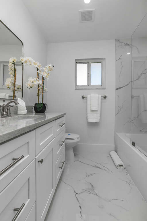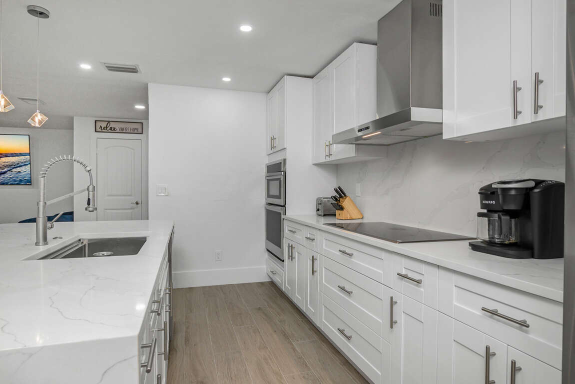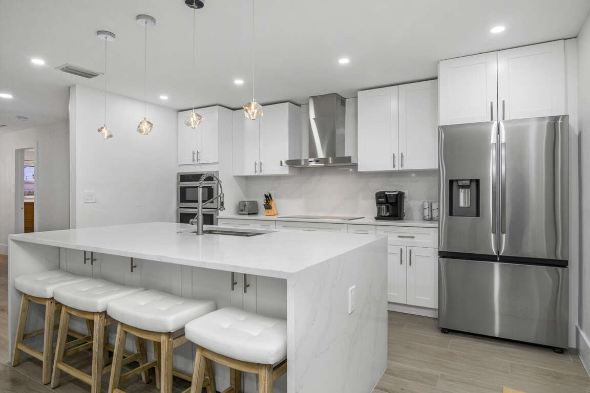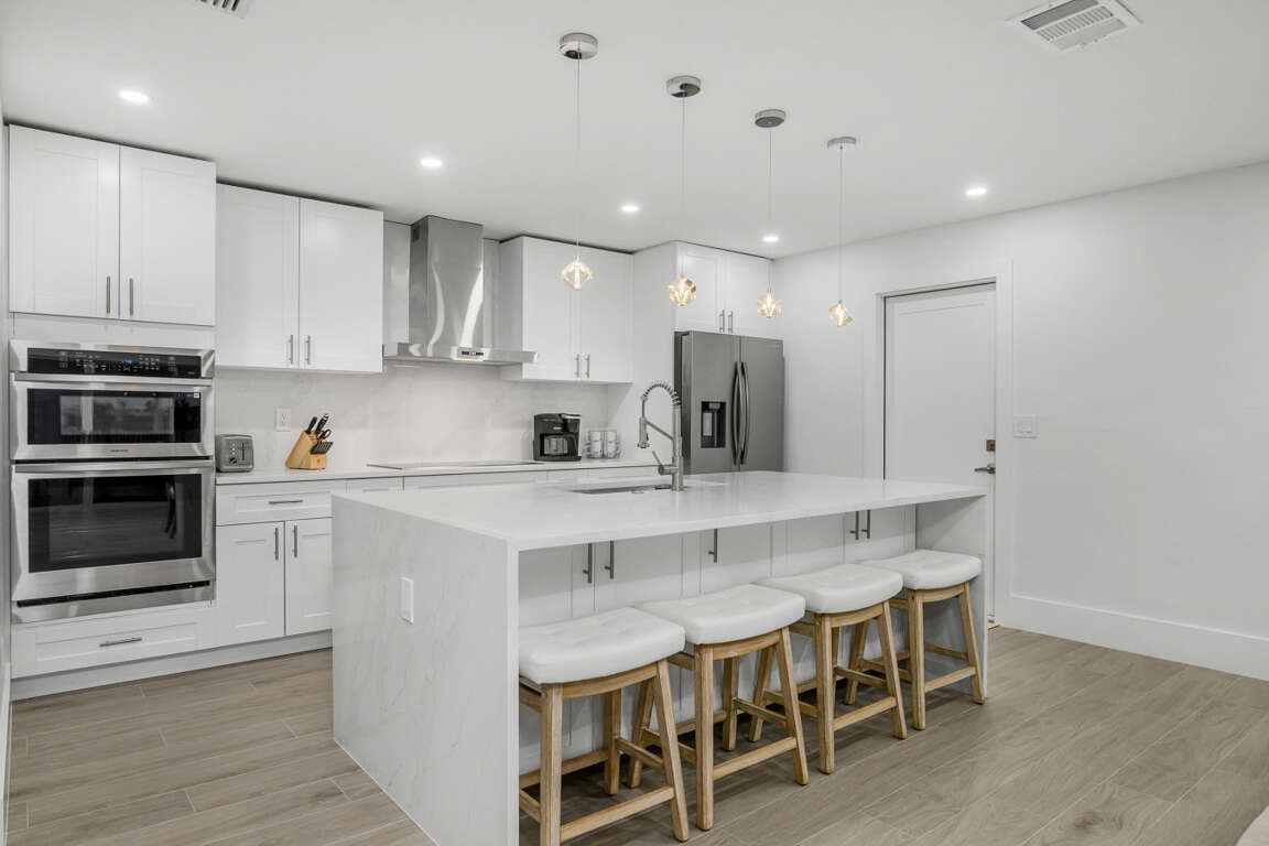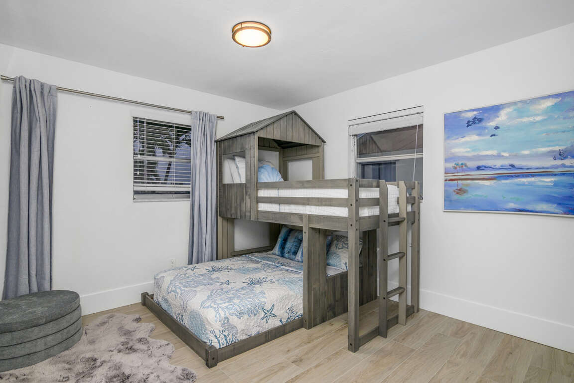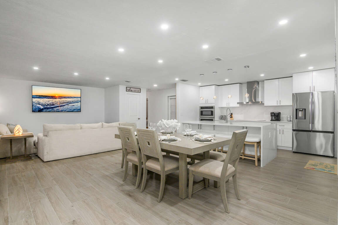 The Waterfront Fishing Retreat is more than a stay—it’s an experience. Fully remodeled with a sleek kitchen, spa-style bathrooms, and designer décor, it offers both comfort and adventure. Enjoy fishing from your private dock, launch a kayak, or bring your boat. The resurfaced heated pool with brand-new equipment is perfect for relaxing after days on the water with family. Make some memories at this unique and family-friendly place.