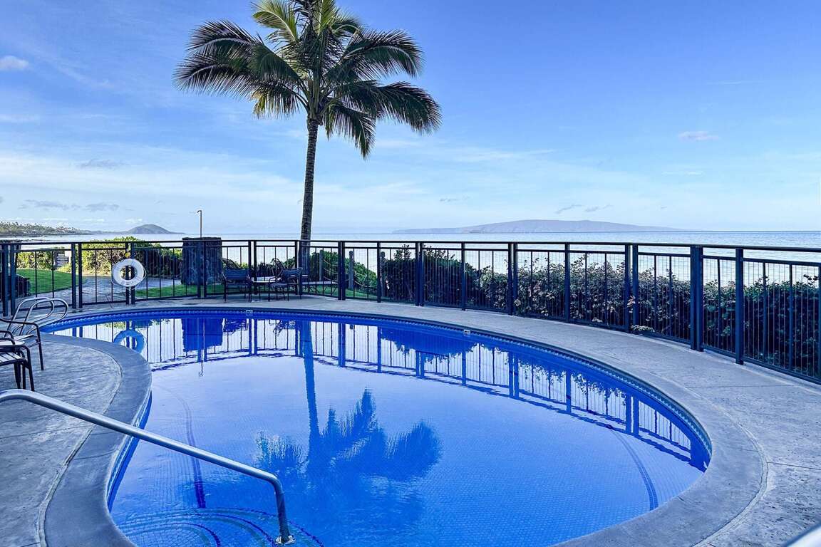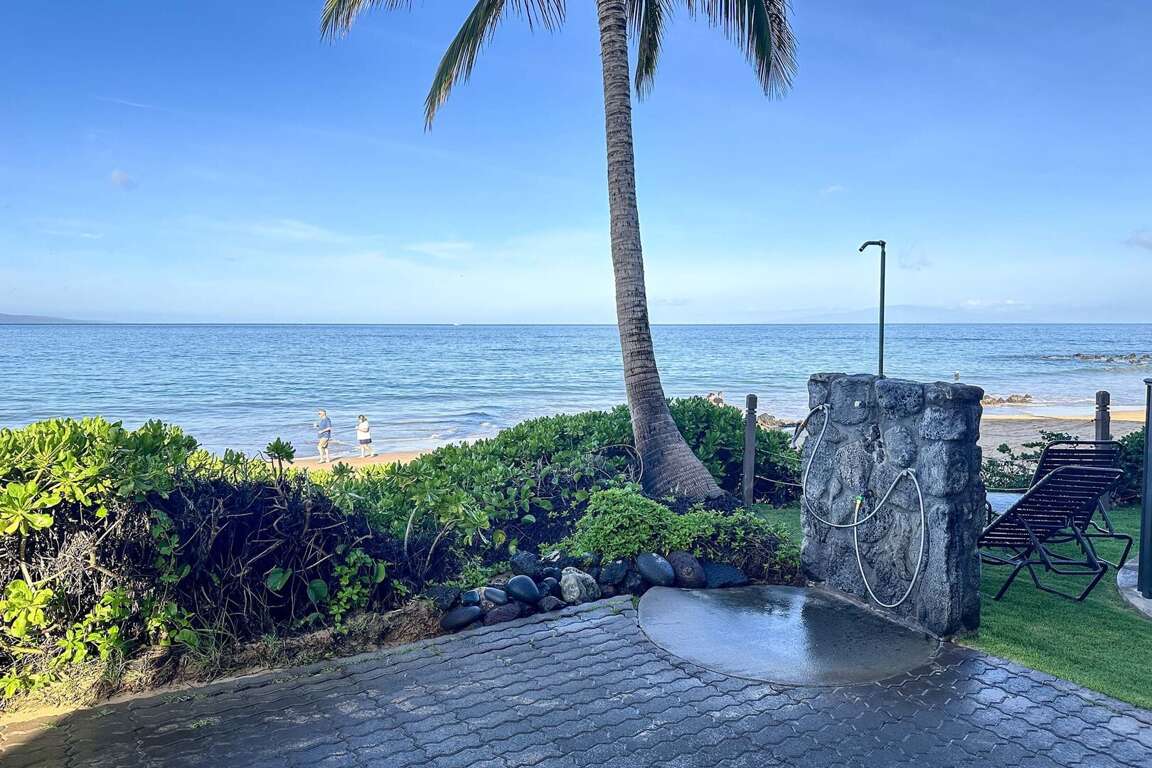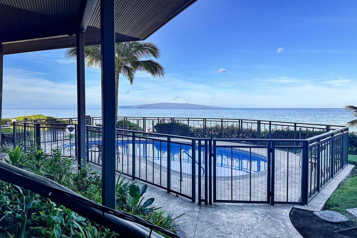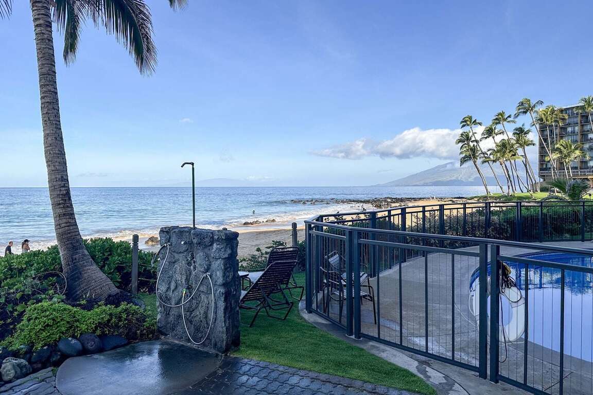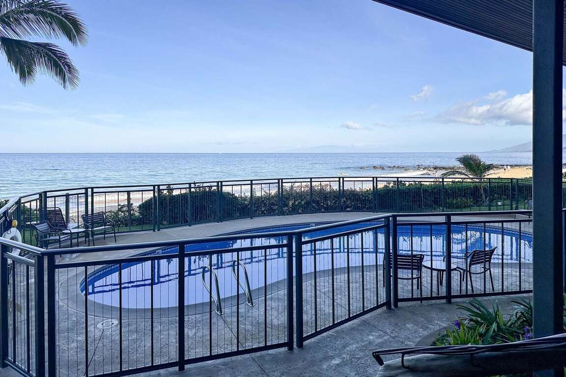 The view never gets old from the oversized beach-front lanai, which offers up views of Molokini Crater and Kahoolawe Island. There is also a refreshing fresh water pool a few feet from the beach.