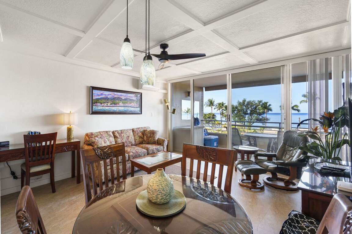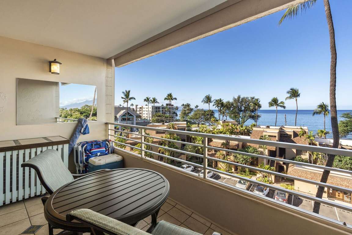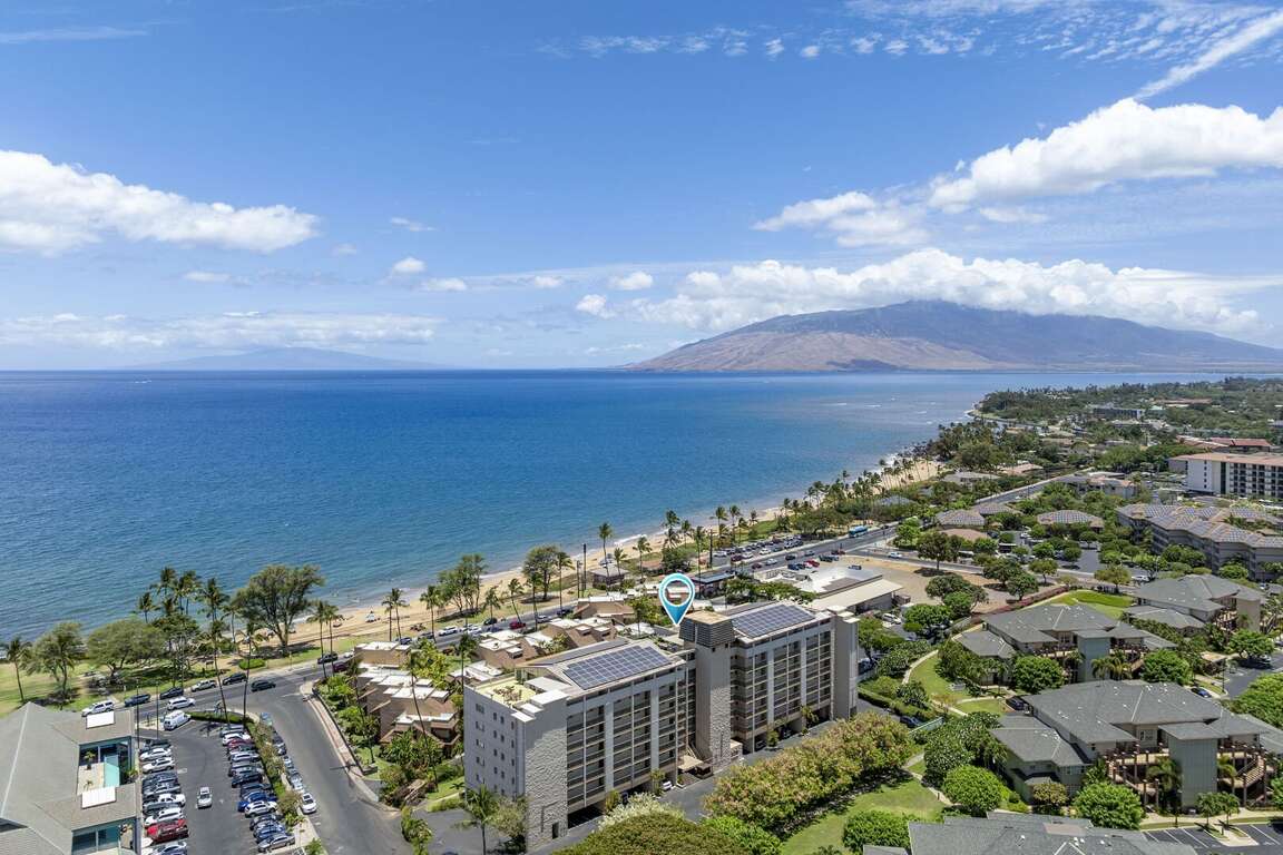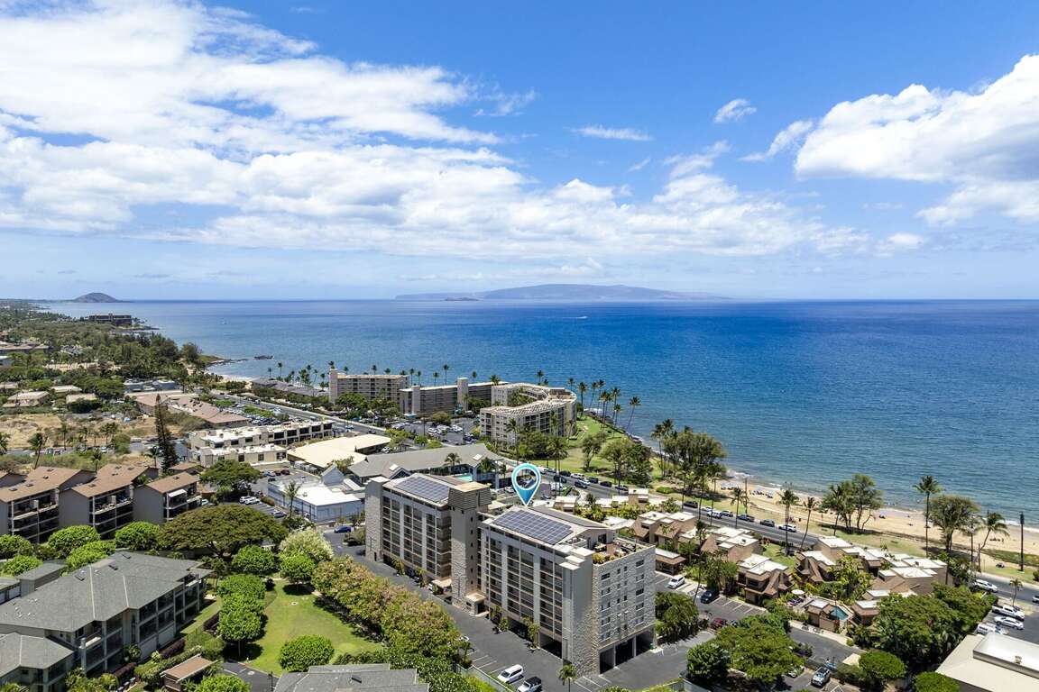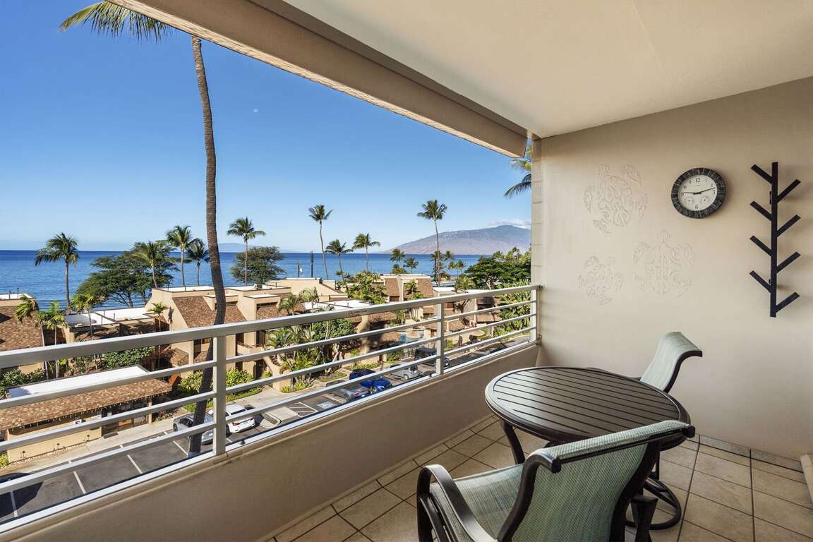 Begin and end your days with breathtaking 180-degree ocean views from the oversized, covered lanai. It's the perfect spot for morning coffee and sunset refreshments. During whale season, you can watch these majestic creatures, hear the soothing surf, and feel the tropical breezes. Kamaole I Beach, one of the finest warm-water swimming and snorkeling spots, is just 400 feet from the building, tucked slightly off Kihei Road.