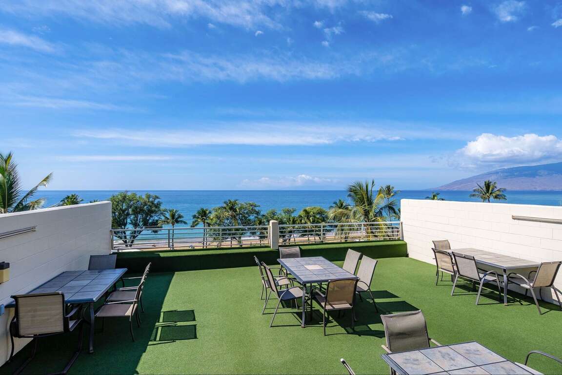 Kamaole Beach Royale is famous for its unique Penthouse Rooftop Garden, a seventh-floor oasis with two commercial-grade gas grills, outdoor kitchen facilities, ample seating, and some of the best coastline views in all of Kihei. The property’s sparkling pool, solar heated, offers plenty of cushioned seating for relaxation.