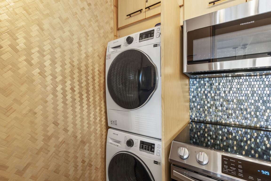 The newly remodeled kitchen is equipped with full-sized, state-of-the-art appliances and all the necessities, including a coffee maker, microwave, ice maker, dishwasher, blender, and a full complement of cooking and serving ware. Additionally, a full-sized washer and dryer are provided for your convenience.