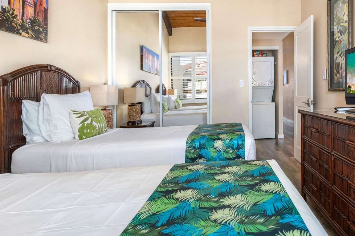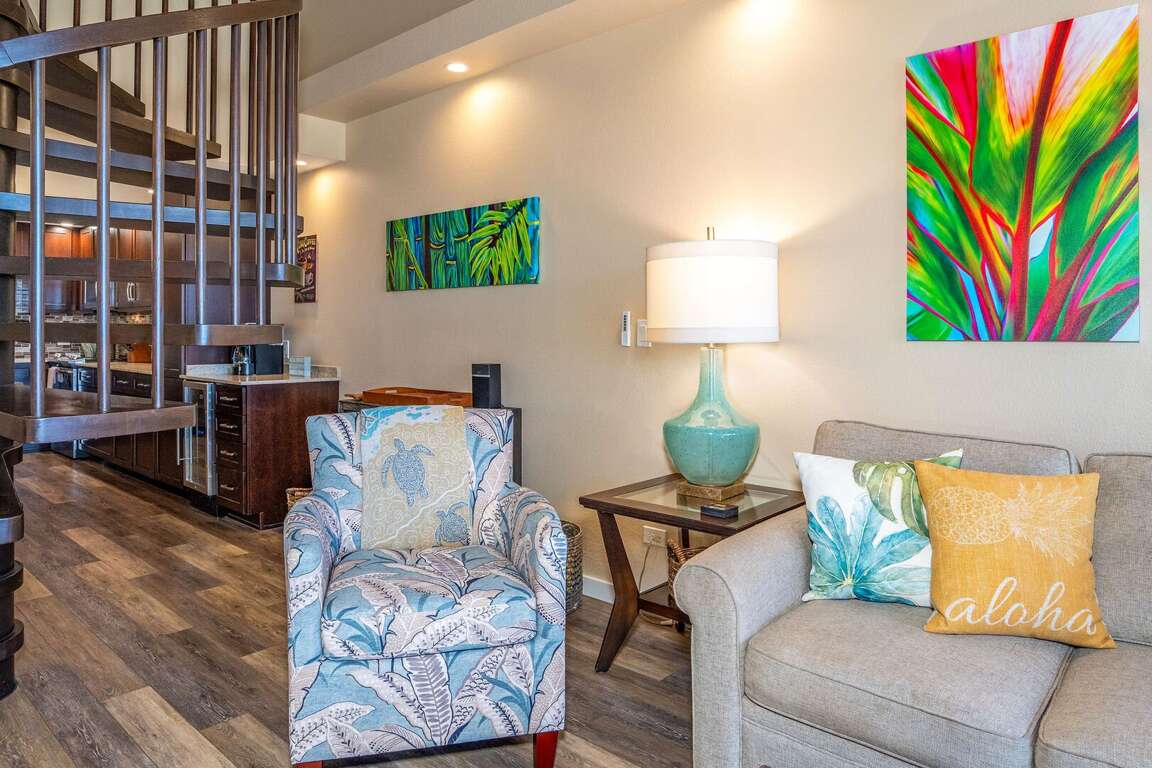 Unit 3-406 has an extra-large lanai, allowing your whole party to enjoy sunsets or viewing whales splashing in the ocean. If you choose to relax indoors, sit back, and enjoy the cool air from the high-quality split air conditioning while enjoying beautiful art created by local Maui artists. Furnishings are from high end Maui showrooms and give off a tasteful island vibe.