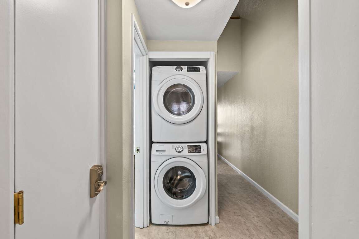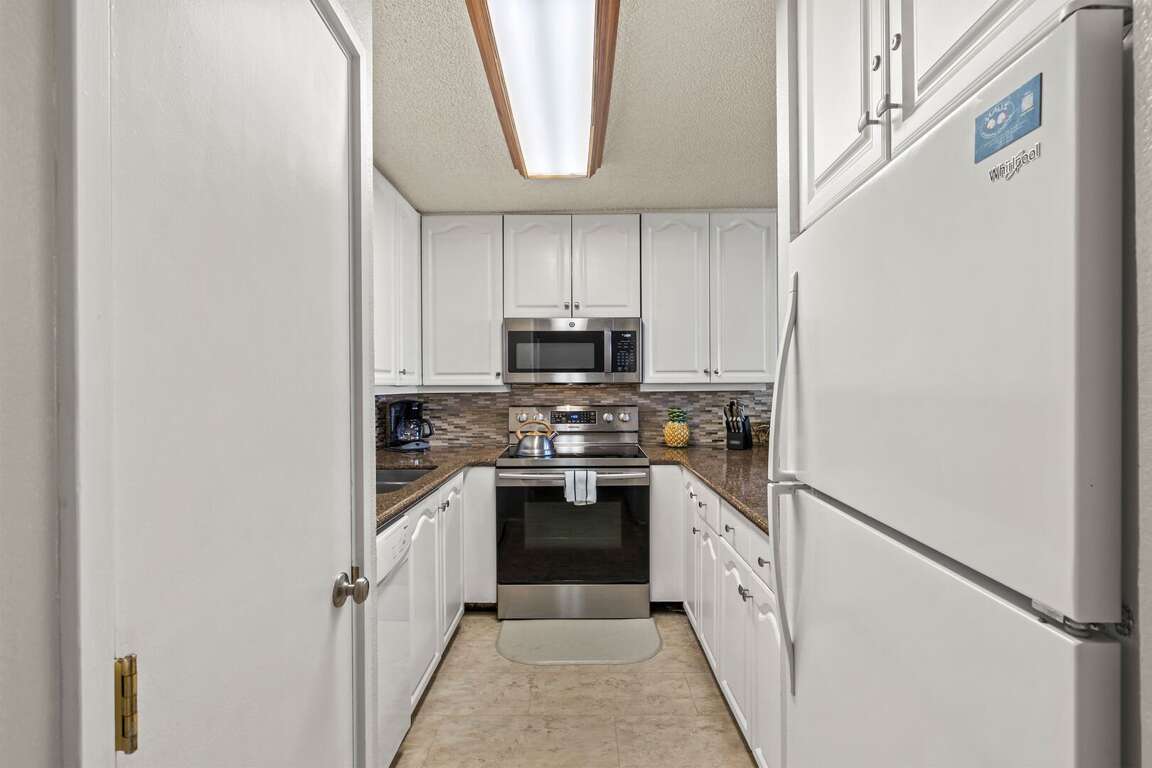 The fully equipped kitchen features granite countertops, quality appliances, and all the cookware and utensils you’ll need, whether preparing a quick breakfast or a family dinner. A convenient dining area flows seamlessly from the kitchen, offering space for meals and conversation.