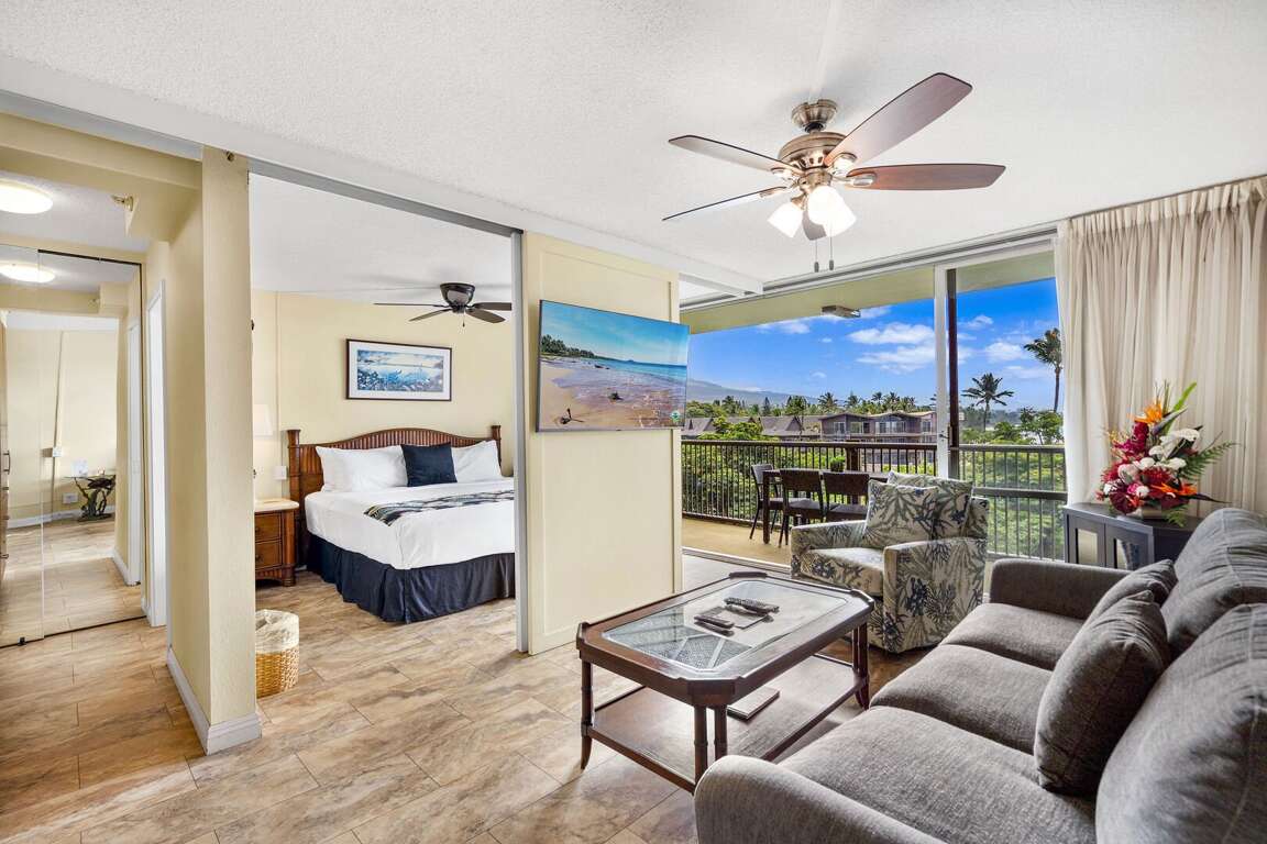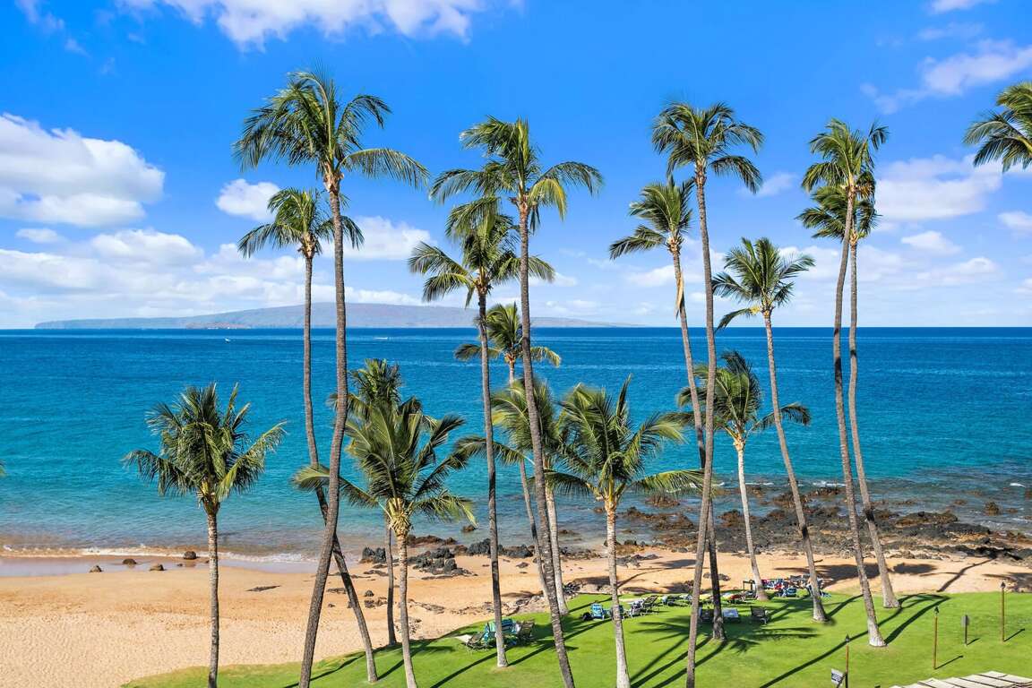 Inside, the unit has every imaginable convenience -- the San Diego based owners set it up for their Maui getaway and equipped it for style and comfort. Split-system AC chills the unit, and high-speed Wi-Fi is free. New furnishings and art, a beautifully remodeled kitchen, new high-end King mattresses and luxury linens, and a full complement of beach gear provide the ultimate setting for your Maui getaway, for up to four guests. The two bedrooms have excellent separation: one has spectacular ocean views, the other a peek of the ocean.