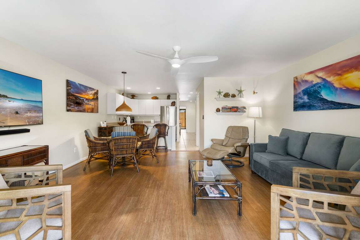 Maui Kamaole J-104 is located near the Maui Kamaole's amazing Grotto pool, this elegant and serene condo has been beautifully updated with high-quality furnishings, high-end luxury mattress and bedding, and even all the beach gear you'll need, this immaculate condo is set up for your ultimate Maui adventure. Free parking. High-speed Wi-Fi, Smart TV, Split-AC throughout, and its own private Zen Garden off the bedroom are among the features that make this condo stand out. Lots of natural light and surrounding greenery set the tropical tone.