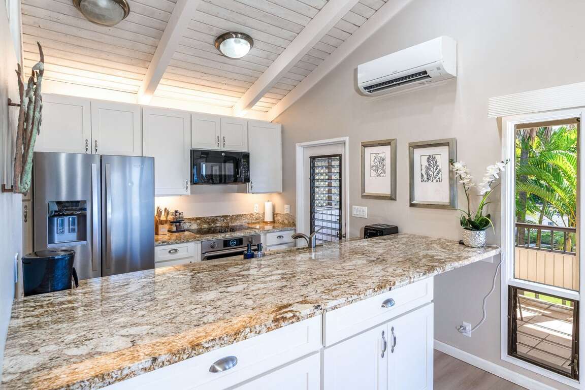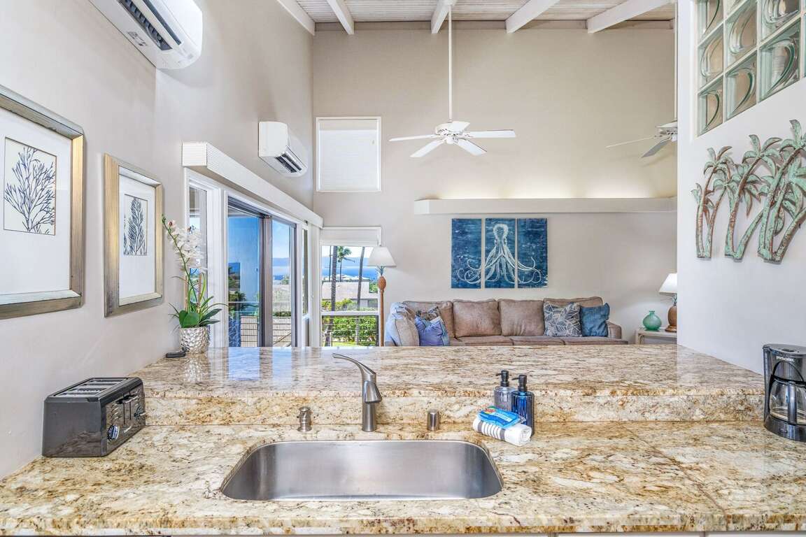 The owners have outfitted this luxury condo with everything to make it the ultimate base for your Wailea vacation, including two split-system AC units, and additional AC in all of the bedrooms. A beautifully updated kitchen, with granite and stunning cabinetry, is outfitted to cook and serve your tropical gathering. The living room opens to a spacious ocean view lanai. Wireless internet, upgraded cable, a large wall-mounted, and wine chiller are among the many conveniences.
