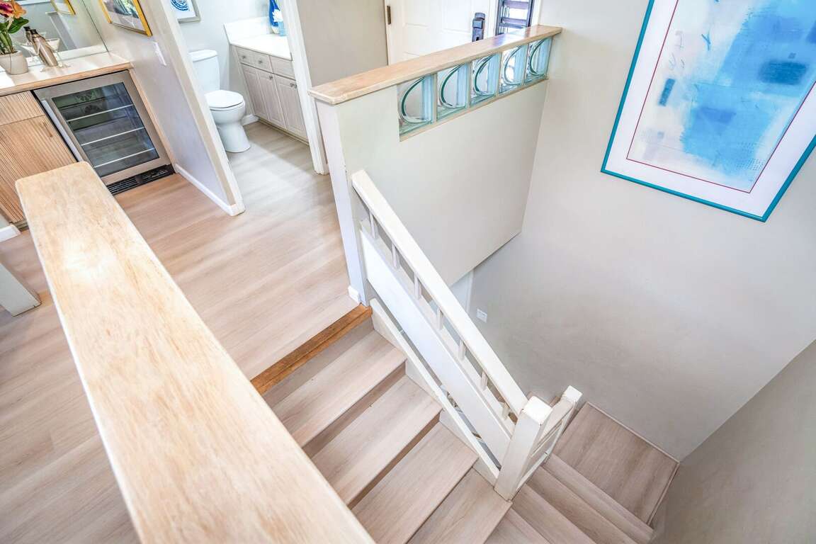 This extra-spacious two-story town-home-styled condo has no common walls and no one above, with a premiere location at Wailea Ekolu unit 510. Enjoy panoramic ocean views from Makena and Molokini to the West Maui Mountains, from the lanai and from the inside of the unit as well. Two private, secure-coded entrances access the resort's largest floor plan (1489 sf). The upscale beach decor showcases quality furnishings that are a cut above typical vacation rental fare, and high-end, quality beds. The upstairs is dedicated to an immaculate, beautifully maintained and open living area and kitchen, with both bedrooms downstairs.
