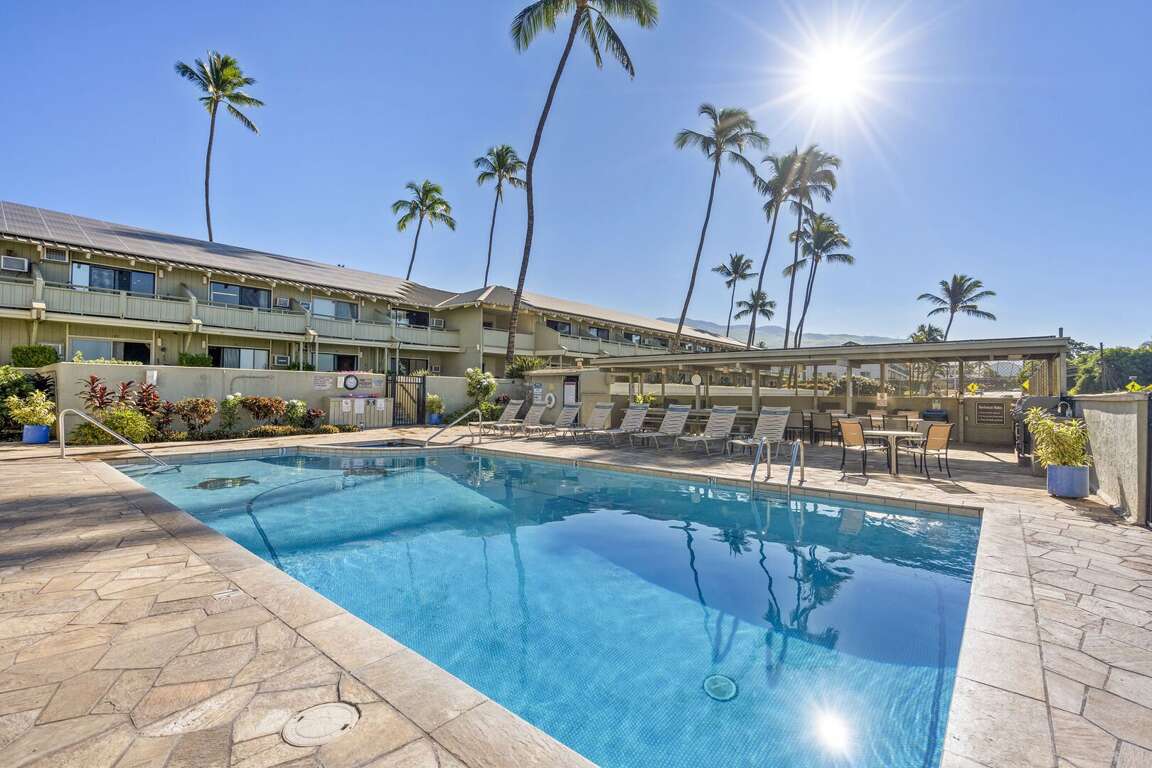 Shores of Maui is a welcoming condo property located in the heart of South Kihei, directly across from the popular Cove Beach Park. Perfect for surfers, snorkelers, and sun-seekers, this charming complex offers spacious one- and two-bedroom units with private lanais and fully equipped kitchens. Guests can relax by the ocean-view pool and hot tub, enjoy the BBQ area, or play a round of tennis on-site. With its prime location near South Maui’s best beaches, dining, and shopping, Shores of Maui provides a comfortable and convenient base for your island adventure.