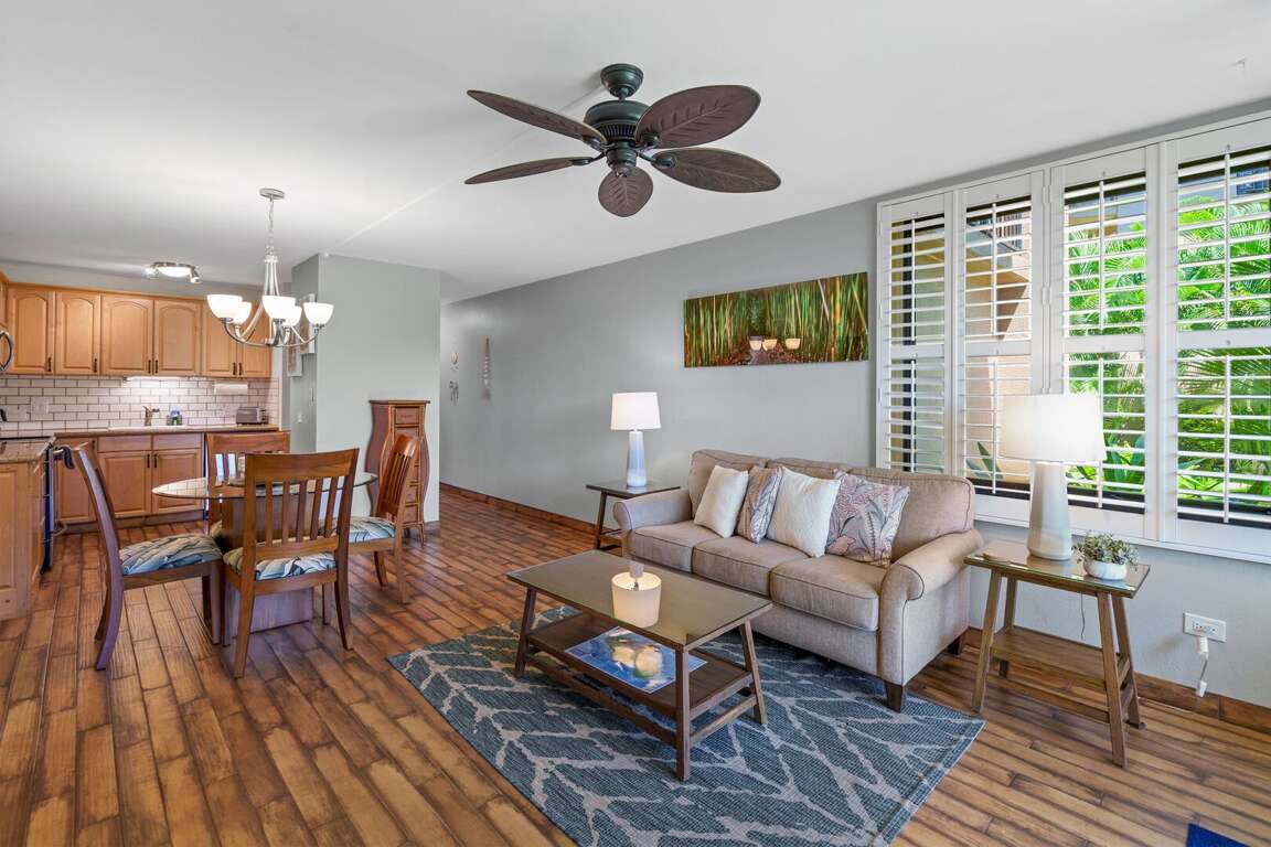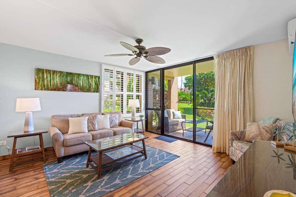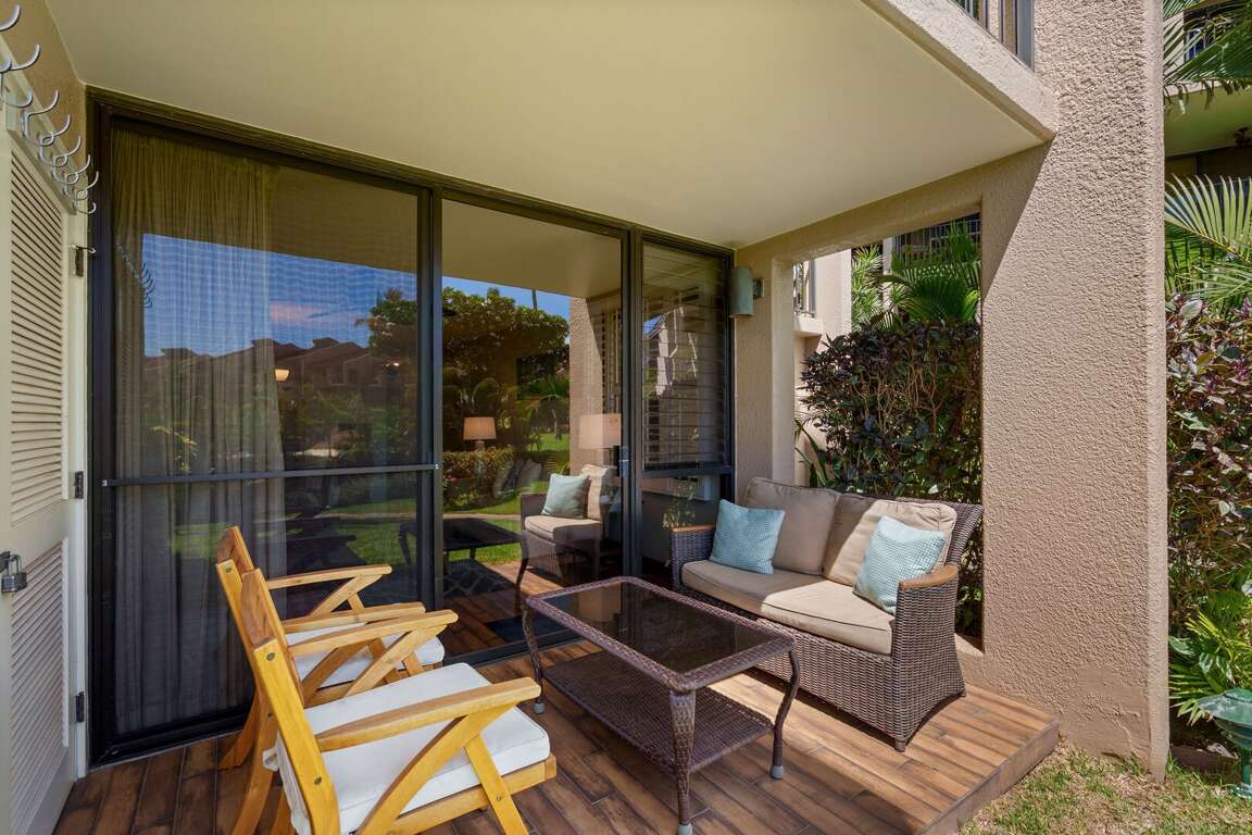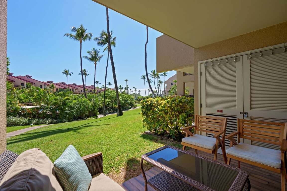 Step outside onto your private lanai and savor the best of Maui living. Sip your morning coffee while soaking in the lush garden views or unwind at sunset with a tropical cocktail in hand. With a peek-a-boo ocean view and the soft Maui breeze, it’s the perfect spot to embrace island life.