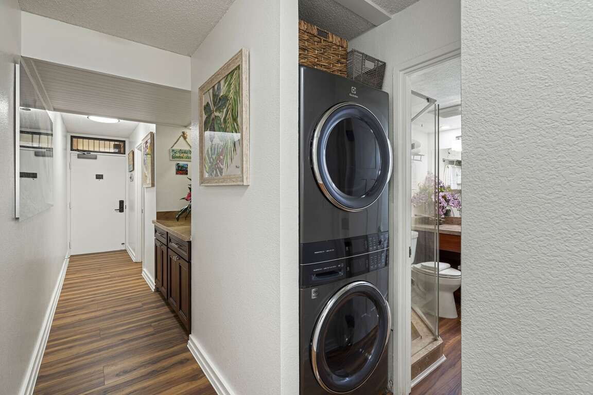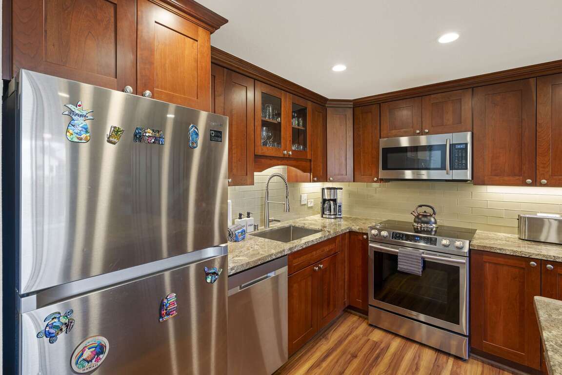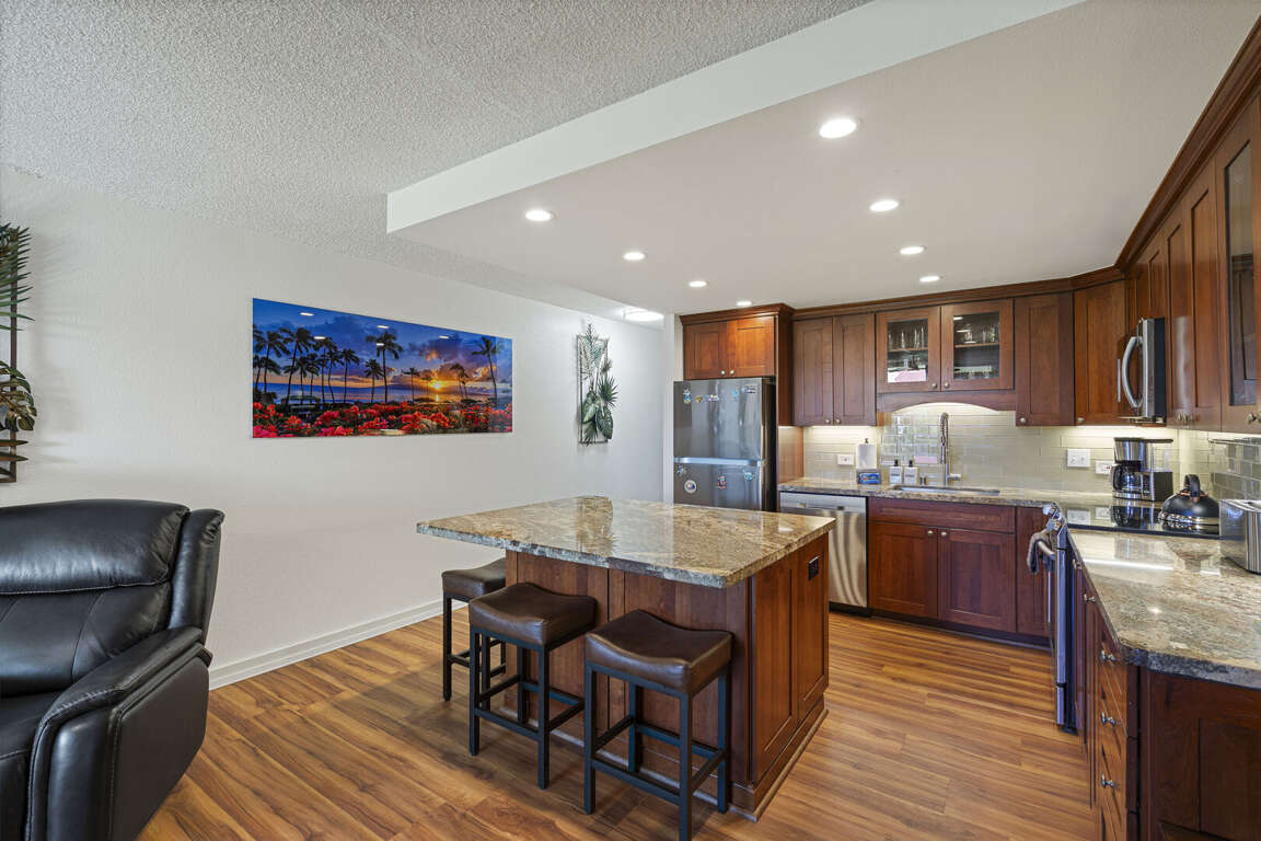 A fully updated kitchen with granite countertops and stainless appliances makes in-unit dining a breeze, and the new washer/dryer adds everyday convenience. Step out onto the lanai, furnished with premium outdoor seating, and take in a peek of the ocean as you sip your morning coffee or enjoy sunset breezes.