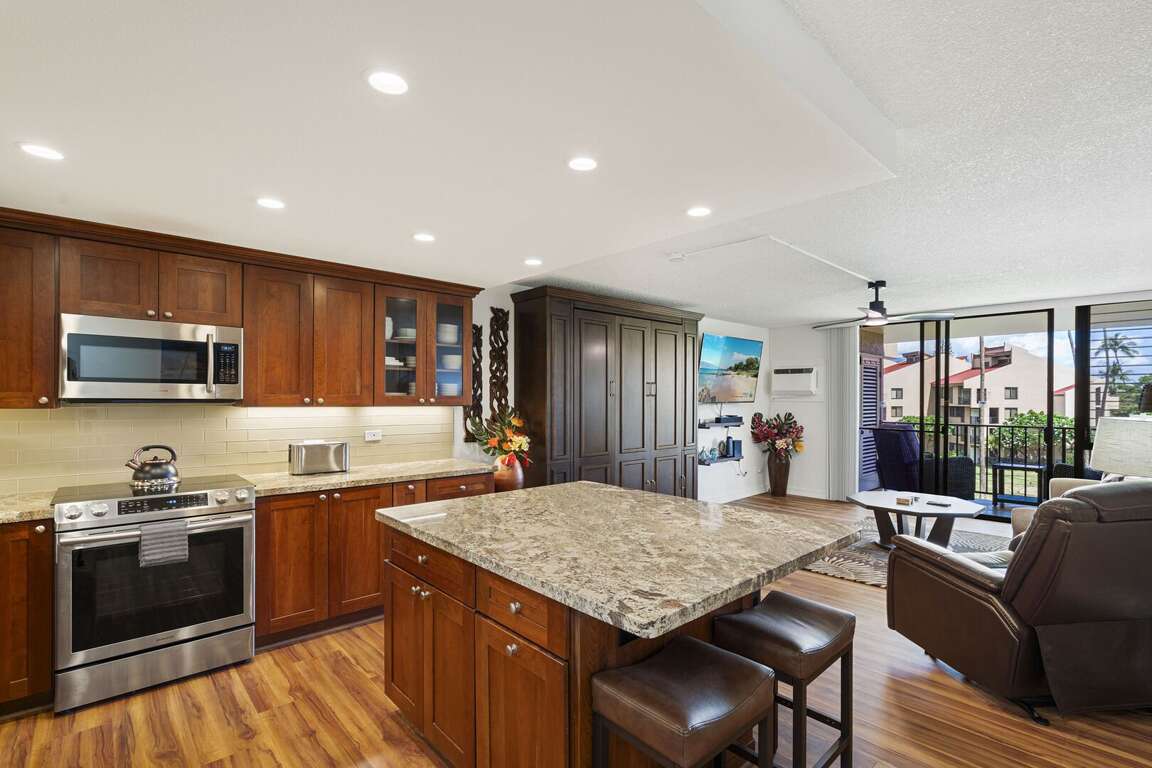 Step into fresh island luxury at Kamaole Sands 7-308 - completely renovated in 2025 with thoughtful upgrades throughout. From brand-new flooring and sleek lighting to a top-to-bottom bathroom refresh and premium furnishings, this third-floor condo blends modern design with laid-back Maui vibes.