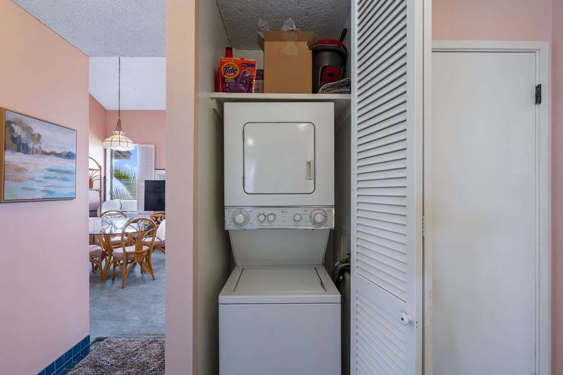 This condo includes an in-unit washer and dryer, ensuring convenience and ease throughout your stay. The interiors reflect a clean, simple style focused on comfort and practicality, offering all the essentials you need without the extra cost.