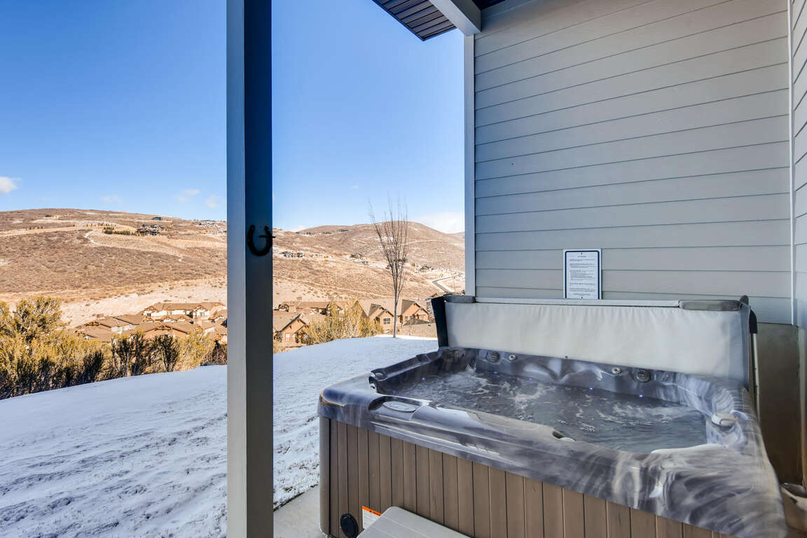 You can enjoy spectacular views of the Wasatch Mountains in the private outdoor hot tub while relaxing after a day at the mountains.