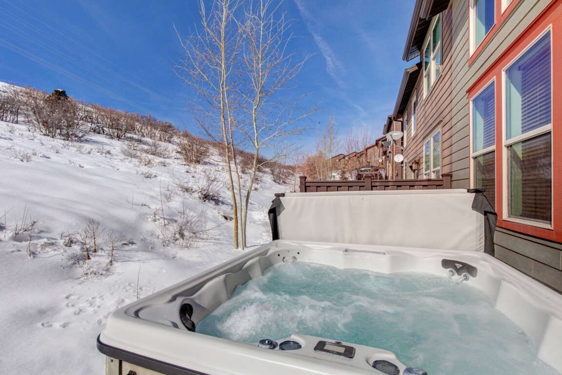 Back on the main level, a sliding glass door leads out to the sun-kissed back PATIO. In the warmer months, this is the perfect spot to enjoy a cocktail while the burgers cook on the grill. In the winter months, the relaxing private hot tub is ideal for soaking in after a long day on the ski slopes.