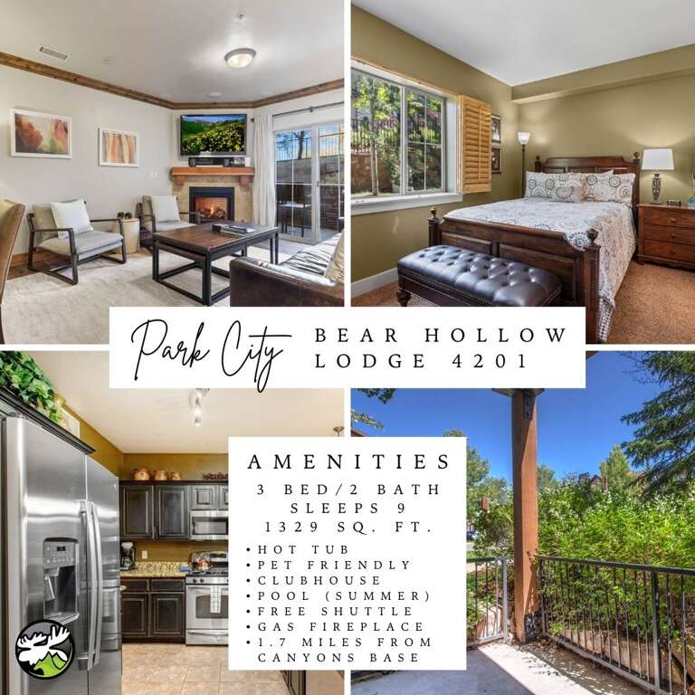 Located in the heart of Park City, UT, our 3 bedroom condo at Bear Hollow Lodges 4201 offers superb amenities including a Fireplace, Washer/Dryer, Dishwasher, and more!