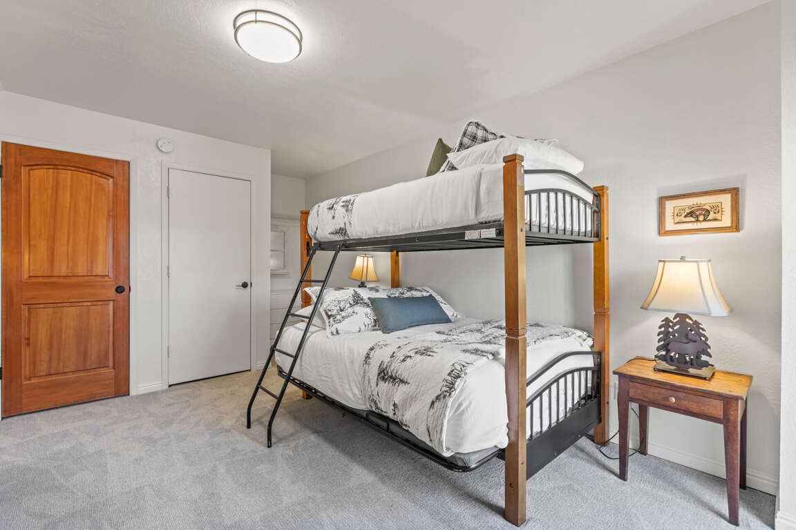 Bedroom 3: Twin over full bunk bed, TV, and a desk for a convenient workspace