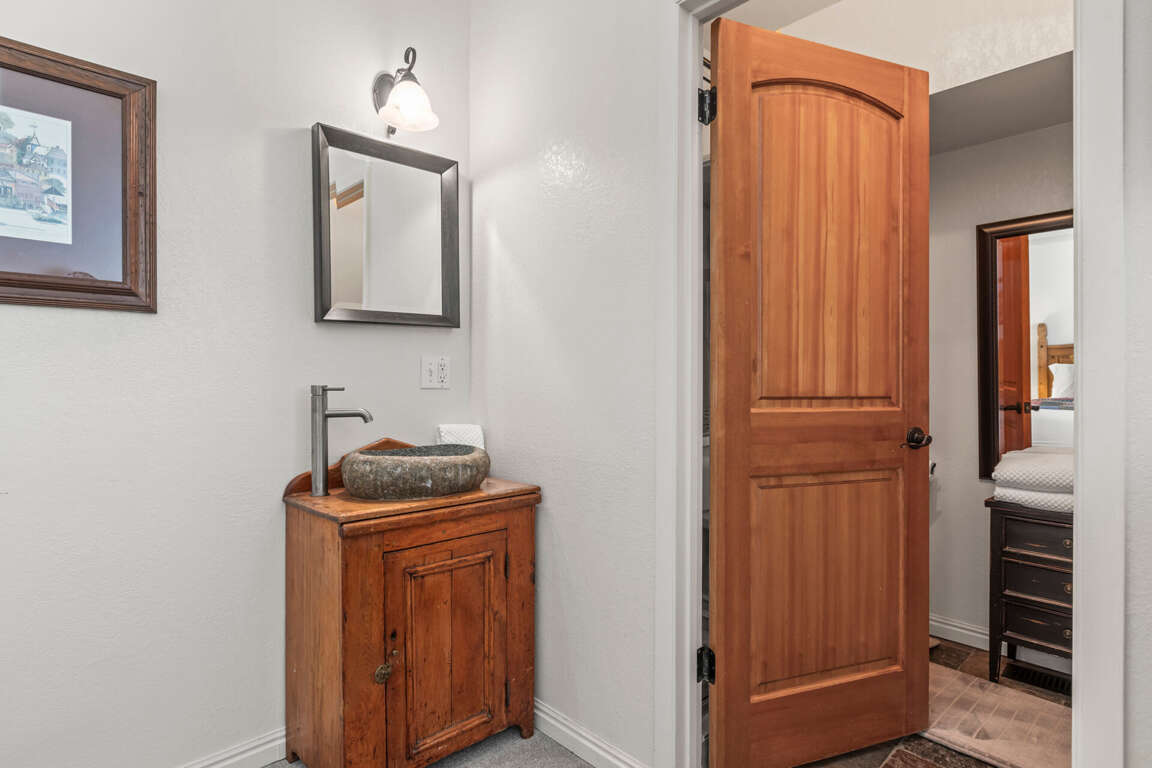 All three bathrooms are designed with convenience and comfort in mind. The main floor bathroom offers a sleek shower, complete with a hairdryer and lighted mirror, making it easy to start your day on a refreshing note. Upstairs, the second bathroom features a tub/shower combo, providing a flexible bathing option for all guests. Each space is equipped with modern fixtures and thoughtful amenities to enhance your stay.
