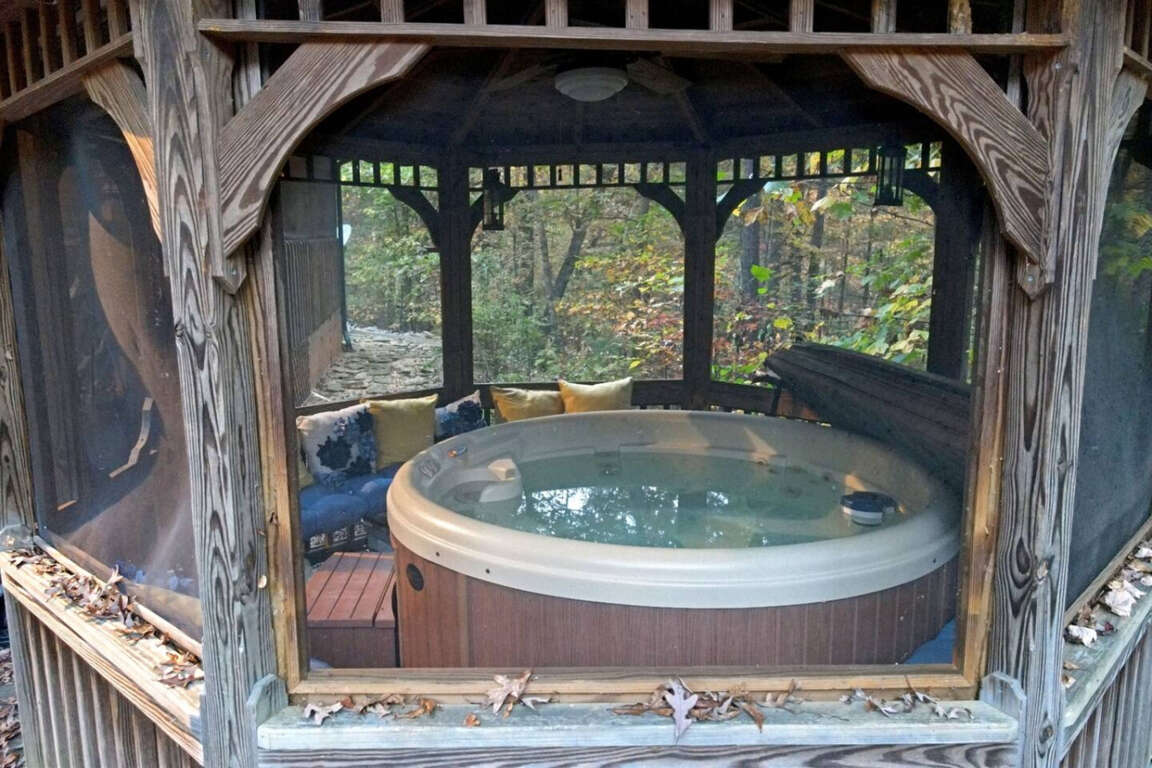 Escape to Hawk Haven, a breathtaking 2-bedroom cabin in Morganton, GA. Immerse yourself in serenity, unwind in a private hot tub, and indulge in countless outdoor activities nearby.
