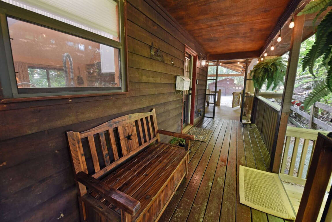 The covered back porch made the rainy nights enjoyable for movie viewing in the hot tub