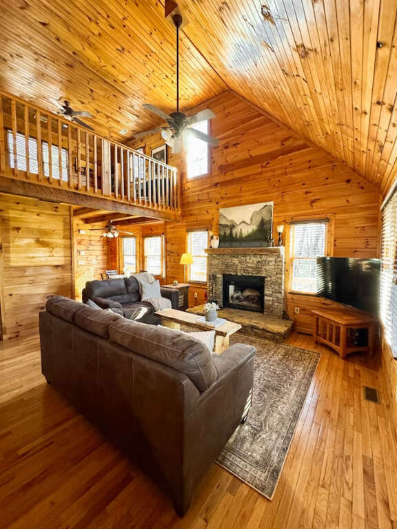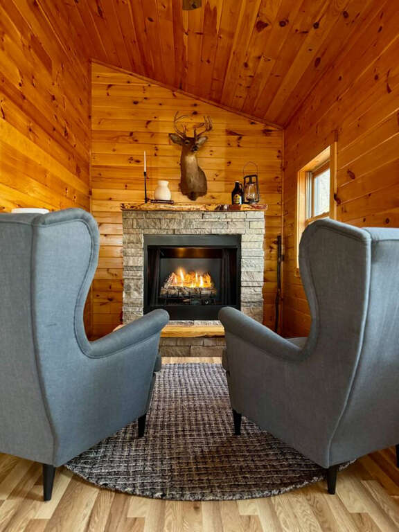 All-Wood Interior & Cathedral Ceilings – Classic cabin vibes throughout