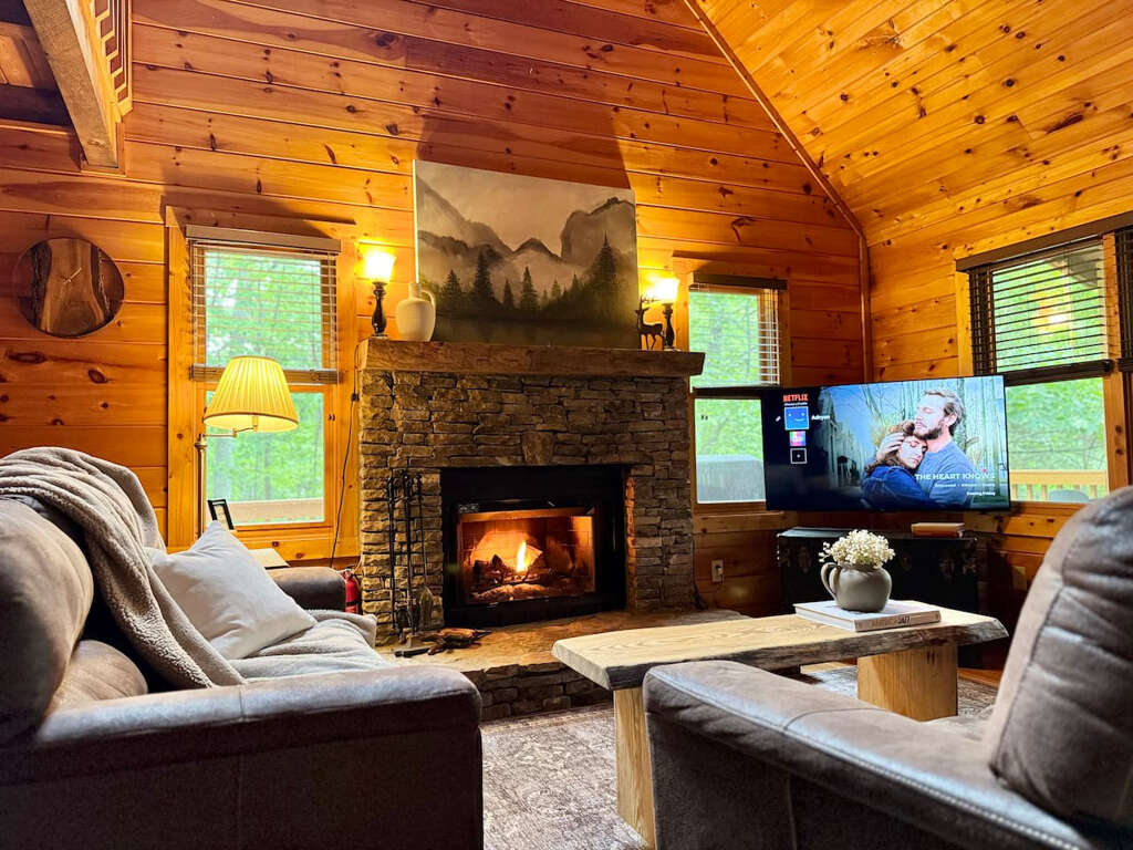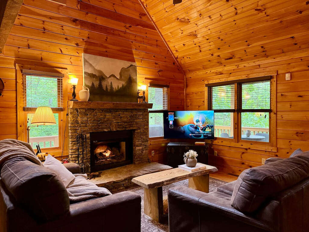 The Tree House – A Cozy Cabin Getaway in the North Georgia Mountains 2br/2ba 2 different fireplaces, firepit, convenient to Blue Ridge, Blairsville GA and Murphy NC