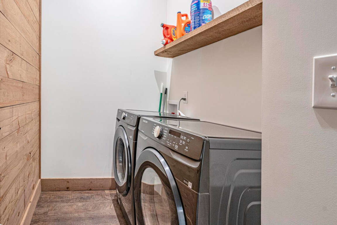 Cook and share meals in style with a gourmet kitchen featuring custom cabinets, granite countertops, stainless steel appliances, and warm wood details. Whether it’s a quick breakfast before exploring or a big family dinner, this kitchen is made for togetherness. There is both a regular coffee maker and Keurig with pods.