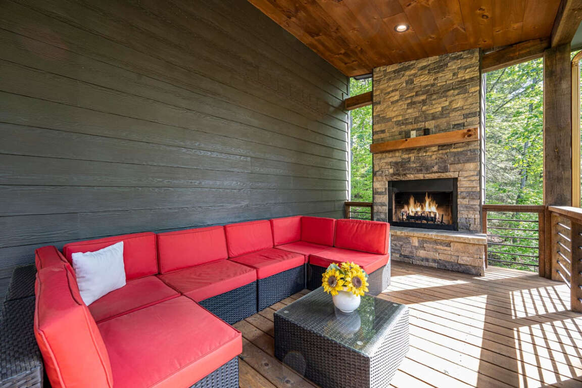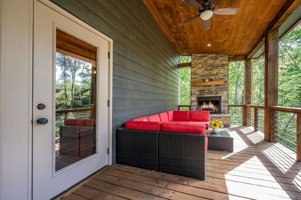 Take in the mountain air on multiple porches—sip morning coffee on the front porch, roast marshmallows by the wood-burning fireplace on the main-level porch, or soak your cares away in the hot tub under the stars.