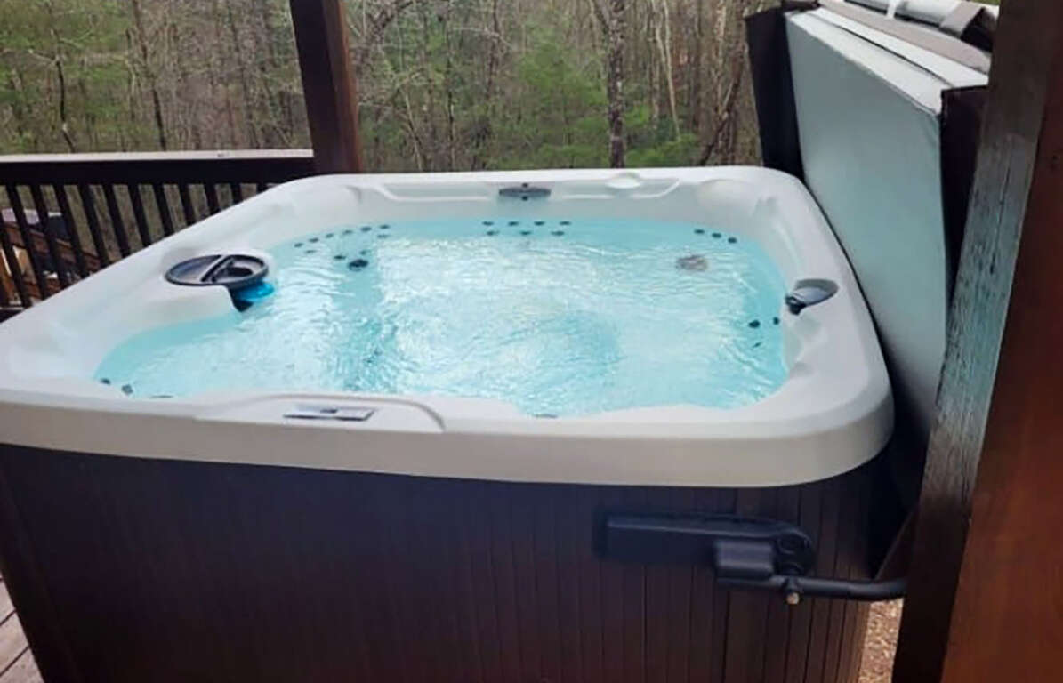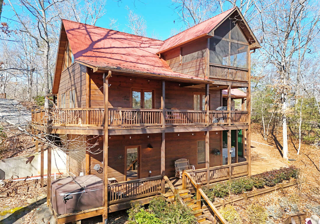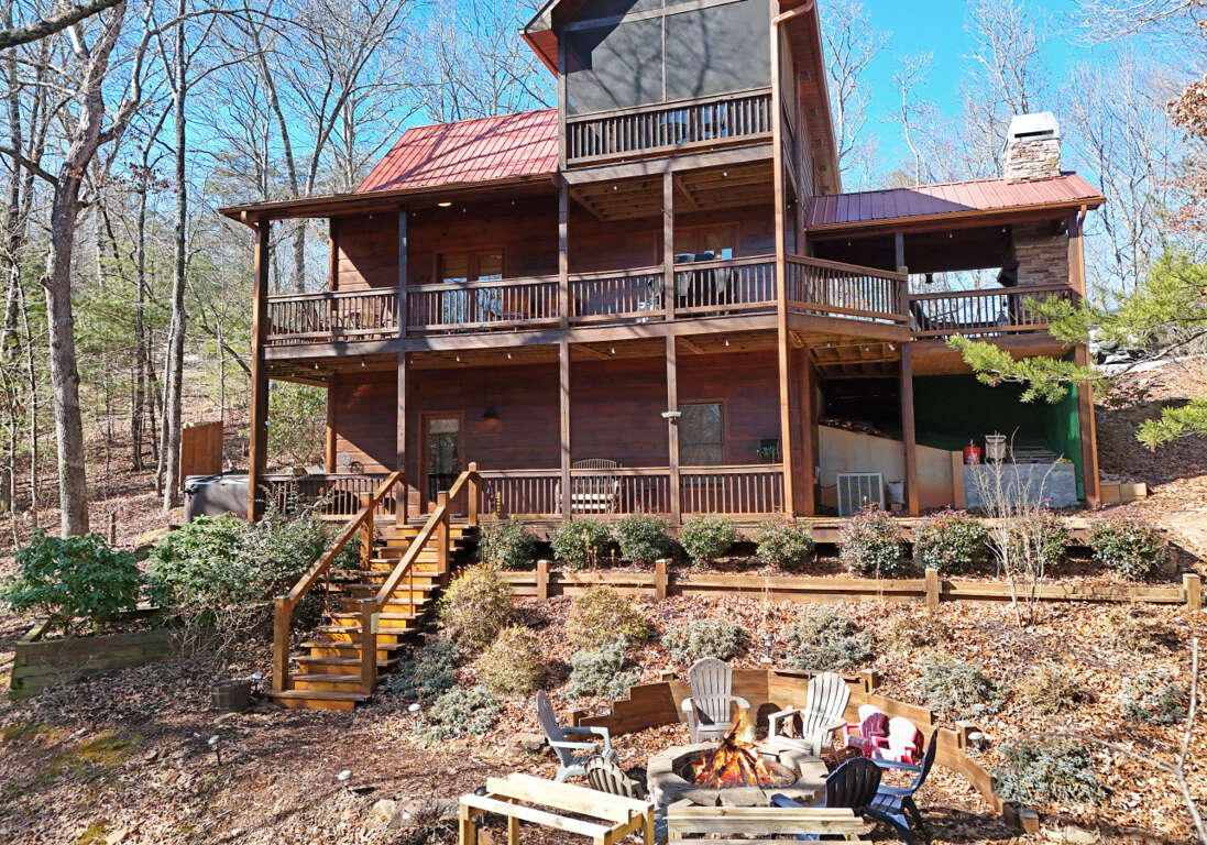 Find solace in our Blue Ridge, GA cabin, a cozy vacation rental nestled in the mountains, featuring 3 bedrooms, a hot tub, fire pit, and a pet-friendly environment.