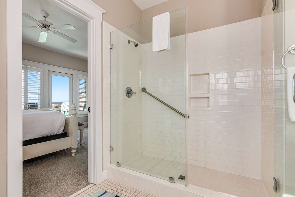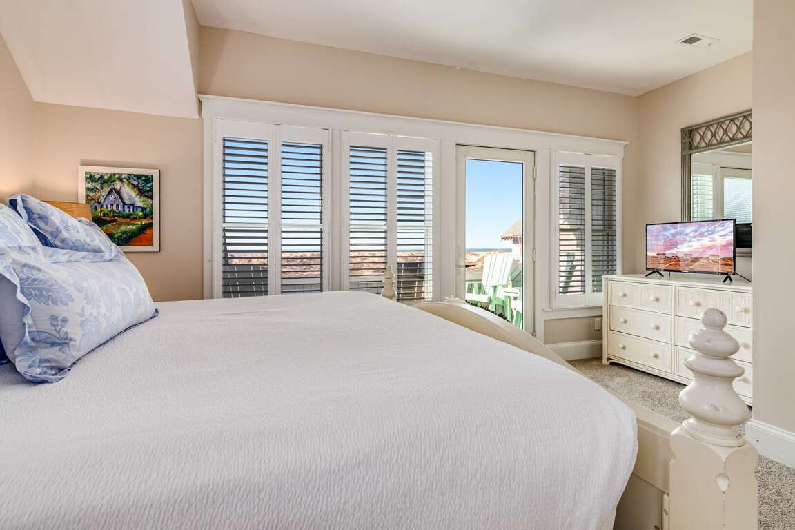 "Re-Lax" is your dream beachside home with direct sand access and stunning sunsets. The first floor features a cozy living area, kitchen, dining room, half bath, and a screen porch perfect for relaxing. The second floor boasts a luxurious king master suite with a private oceanfront balcony, and an additional bedroom with a queen bed, bath, and breathtaking ocean views. The third-floor loft offers more space with a queen bed, two twin beds, and a half bath. Escape to "Re-Lax" for the perfect beach getaway.