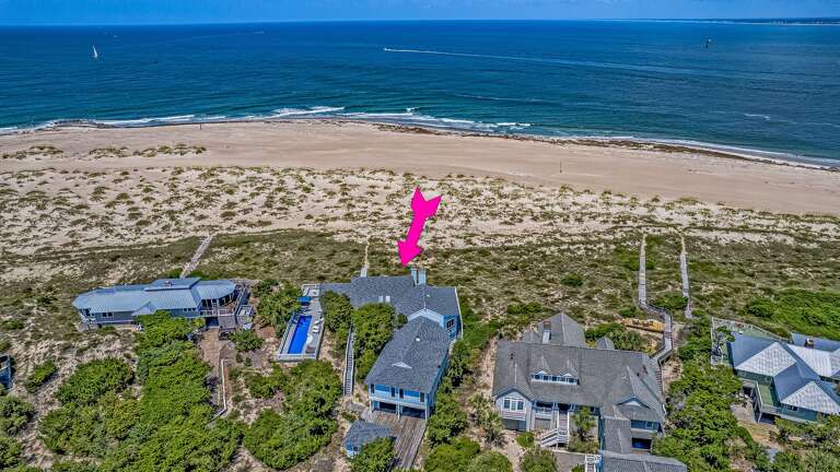 One-level oceanfront home in Bald Head Island with a private boardwalk to South and West Beach, a pool and hot tub, and 4 bedrooms for groups and families; a practical place to stay with golf carts included. Sleeps 10 Guest.