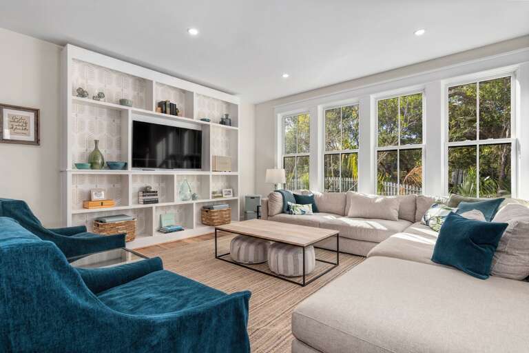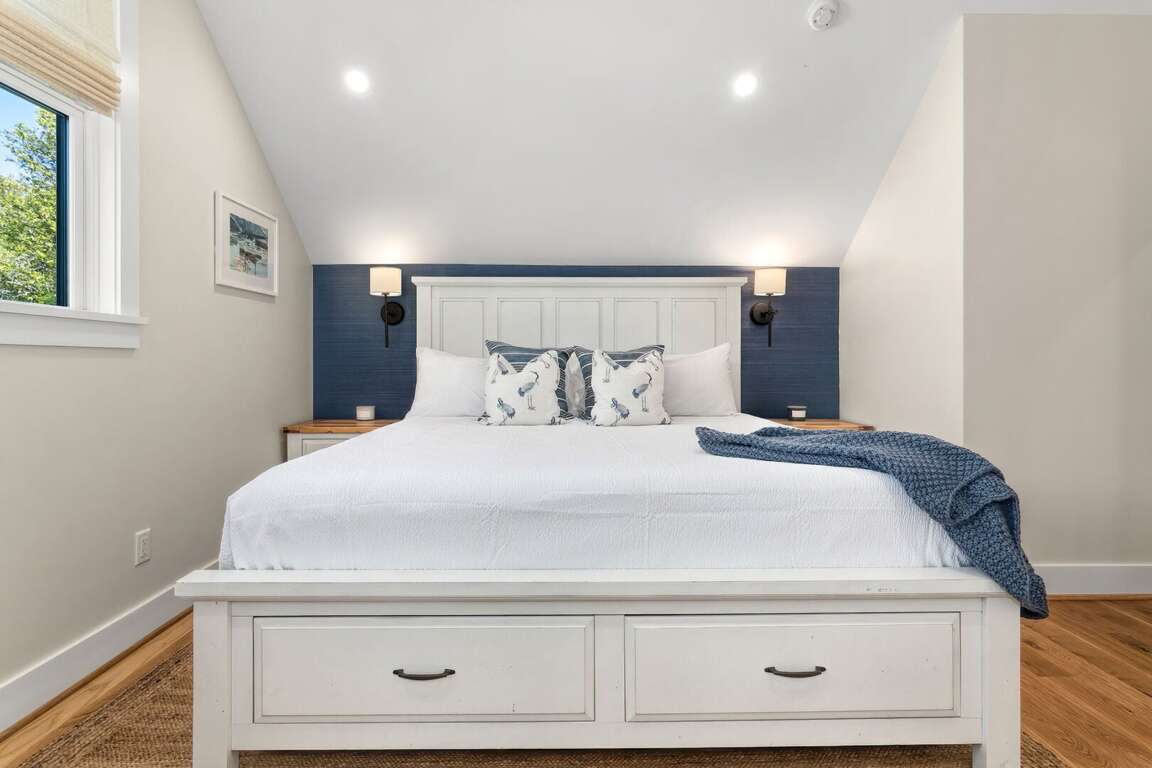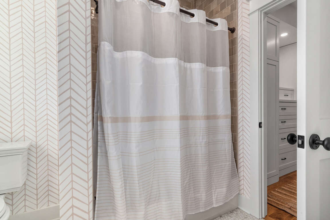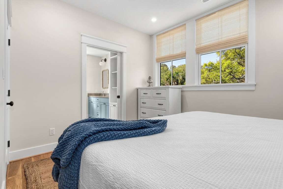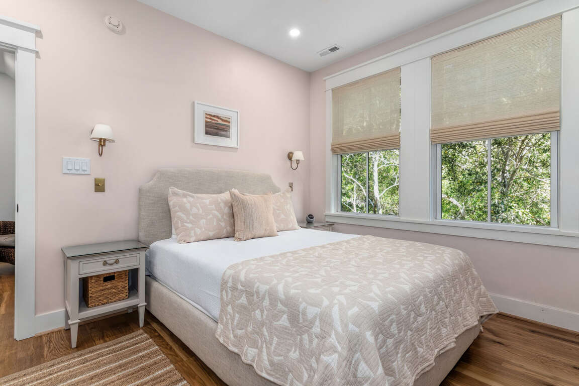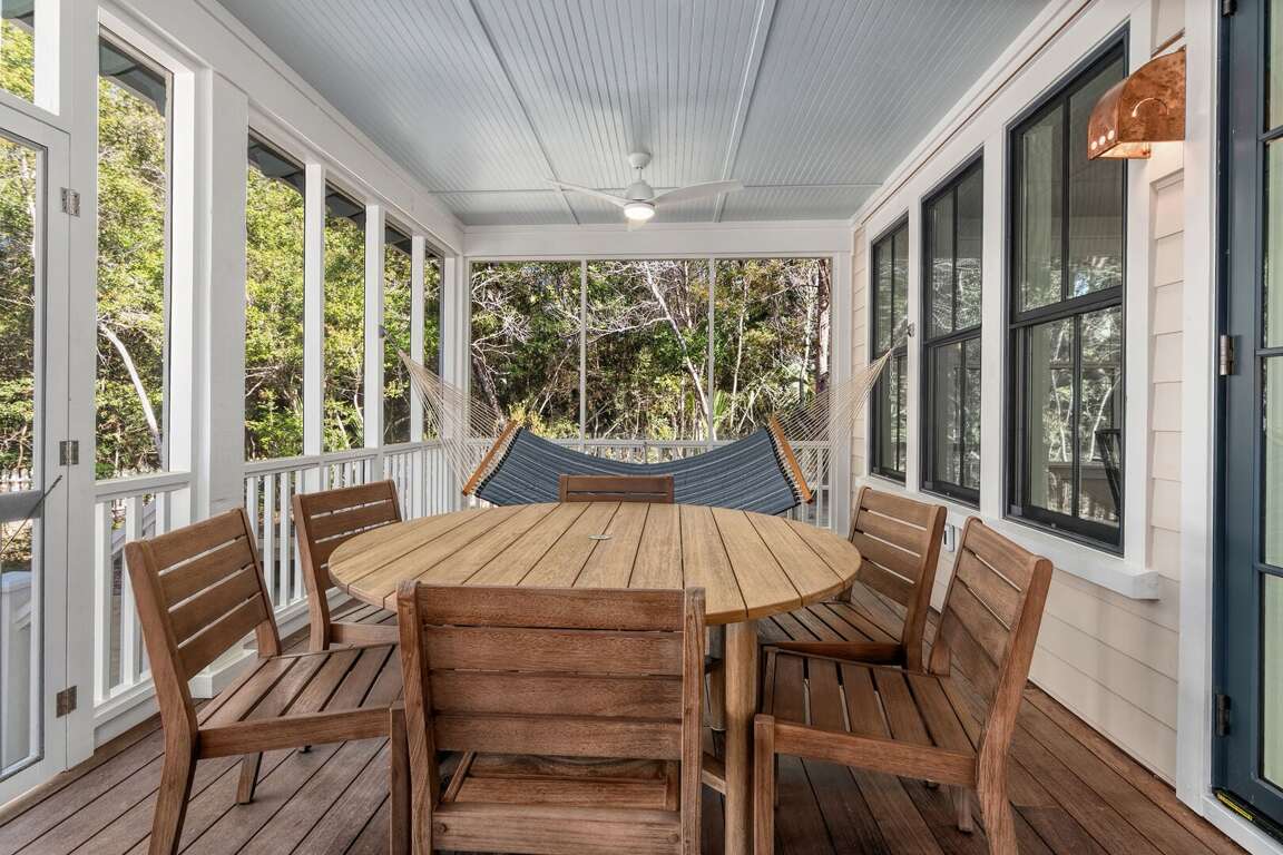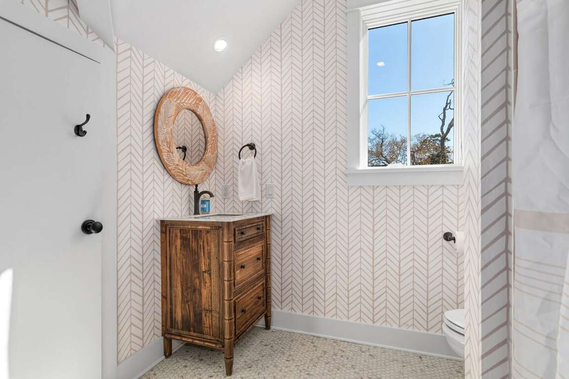 The home is thoughtfully decorated in classic coastal style with new designer furnishings plus the owner’s curated North Carolina art and vintage pieces, with hardwood floors throughout. A luxurious oversize sectional sofa and armchairs downstairs provide a gathering space for the whole family, while a desk and reading chair upstairs offer a quieter getaway space. Multiple choices for dining include a large 8 person indoor dining table, 4 barstools, and outdoor dining table on the screened porch. The convenient main floor laundry room offers its own entrance and an abundance of hooks plus a retractable clothesline.