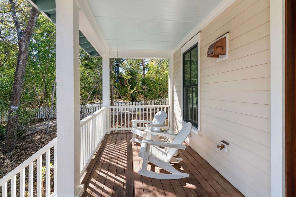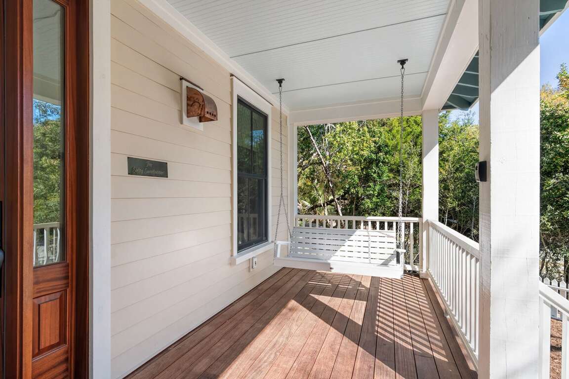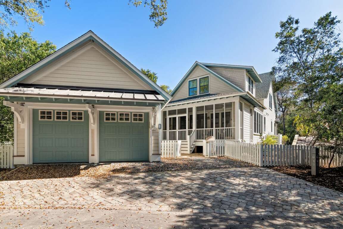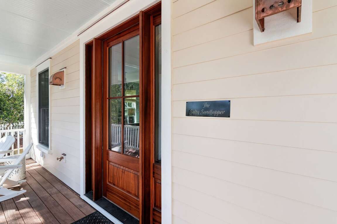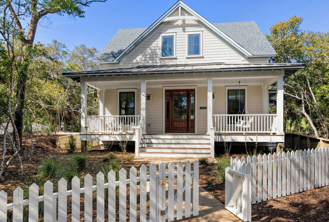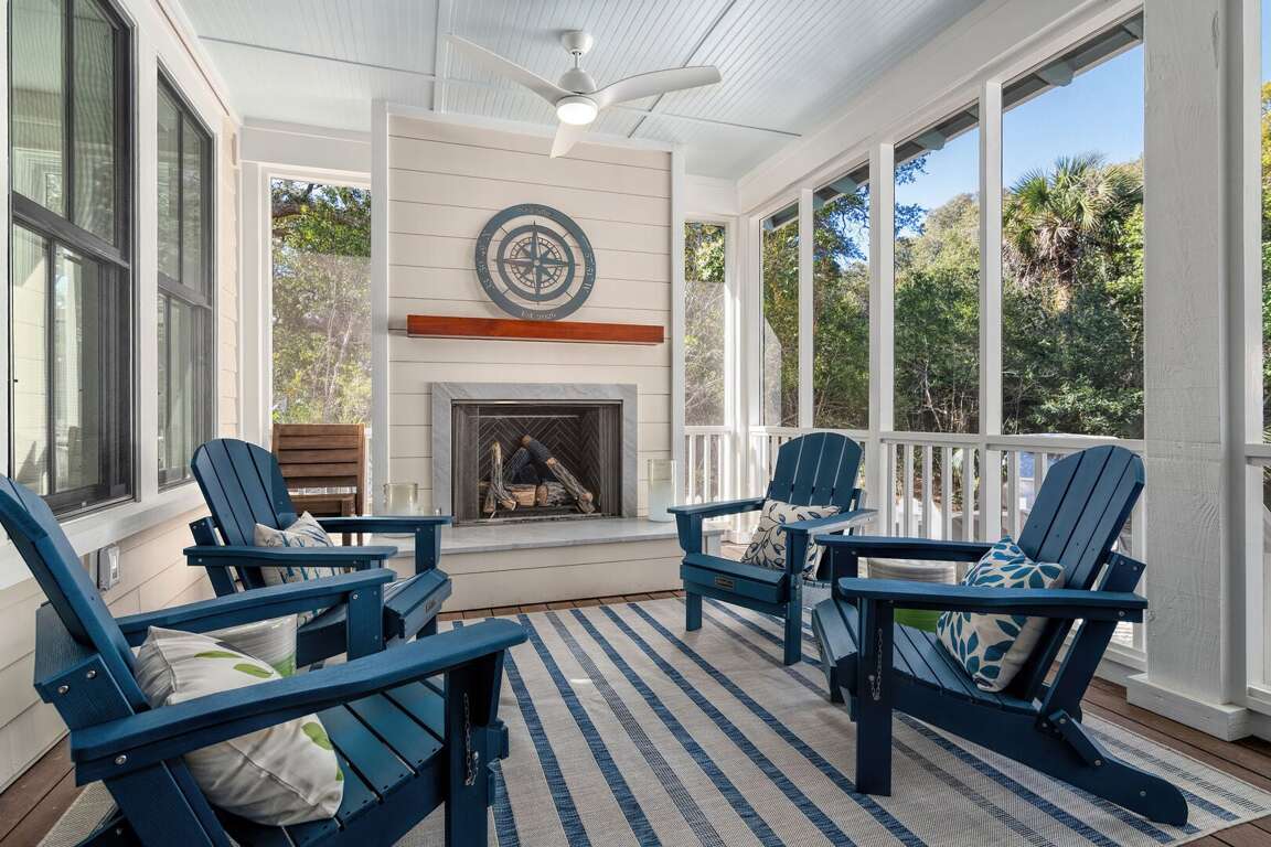 The Salty Sandlapper is a BRAND NEW Cape Fear Station home completed March 2026. The home is located on a large corner lot across from The Commons community park, a 4 block walk or short cart ride to the Shoals Club and East Beach accesses. Two golf carts (4-seat and 6-seat) are provided in a large easy-to-park cart garage with dual automated doors. Shoals Club temporary membership is available with this home. Upgrades for outdoor living include an outdoor shower, grilling deck with 4 burner propane grill, large rear screened porch with gas fireplace (operable October-April), outdoor dining, seating, and oversize hammock, and an equally roomy front porch with Adirondack seating and a swing. Many fun extras are provided for kids and adults including a cornhole set, 4 beach chairs, beach toys, books, puzzles and board games. Baby equipment includes a portable crib, high chair and booster seat. Electronic equipment includes a Bluetooth stereo speaker and 3 smart TVs.