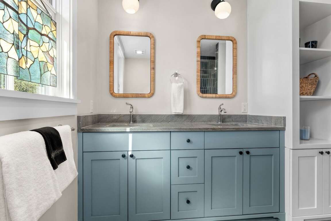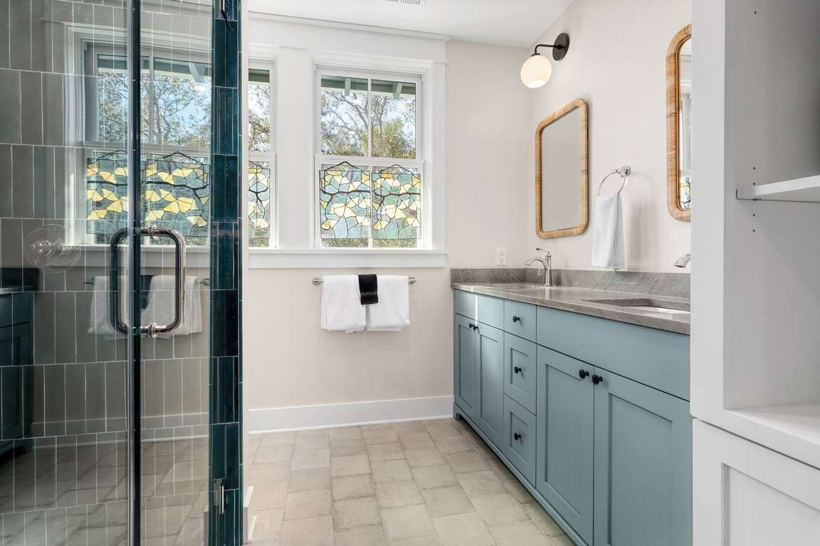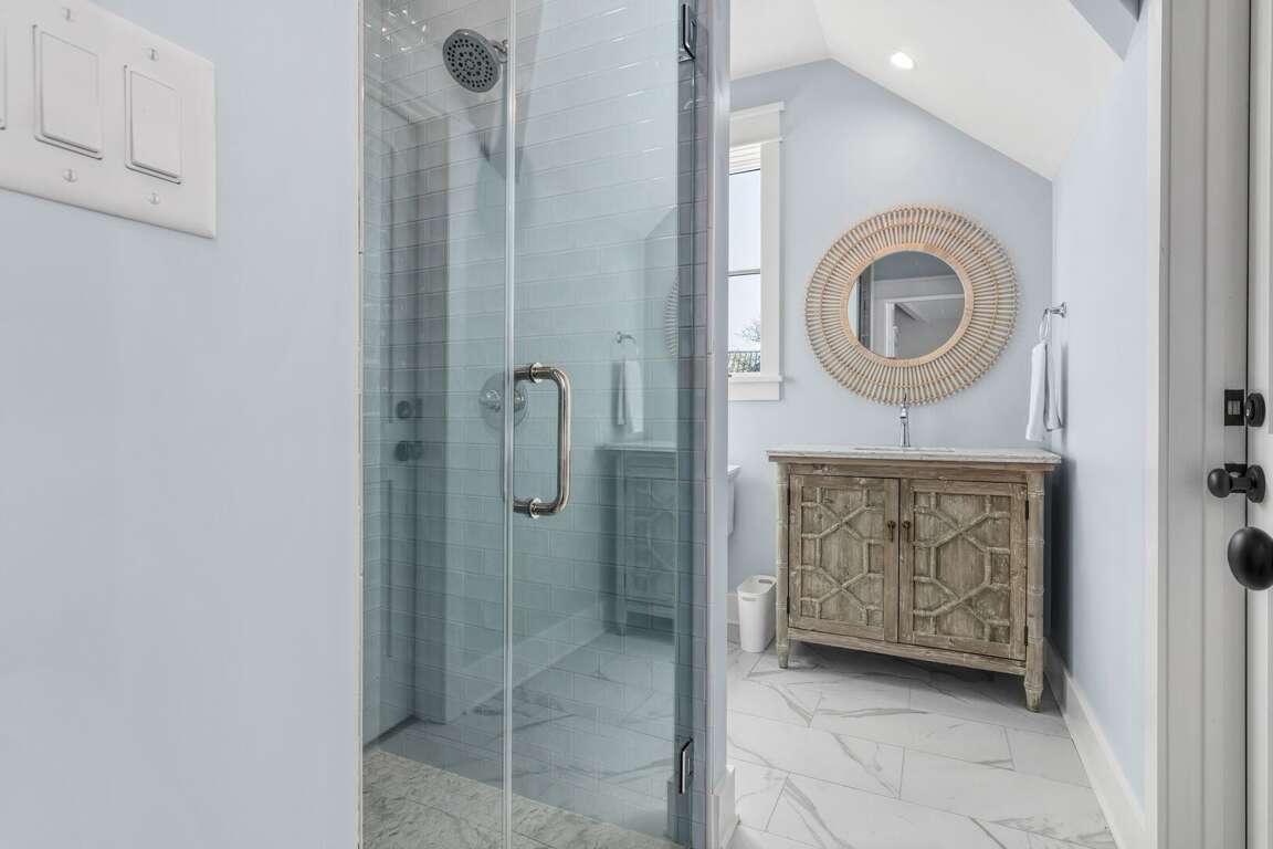 Upstairs primary BR2 (up): king with walk-in closet; dual vanities, walk-in shower